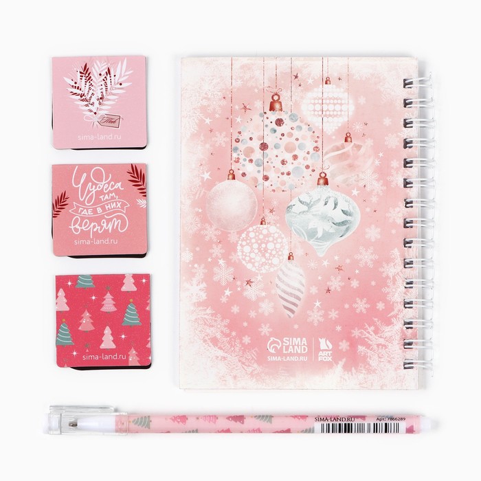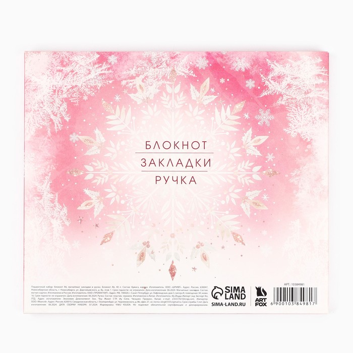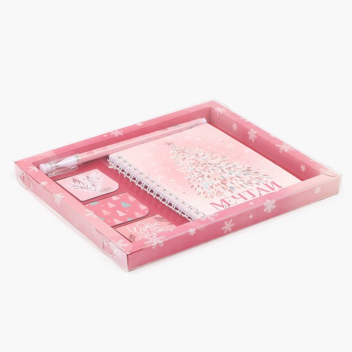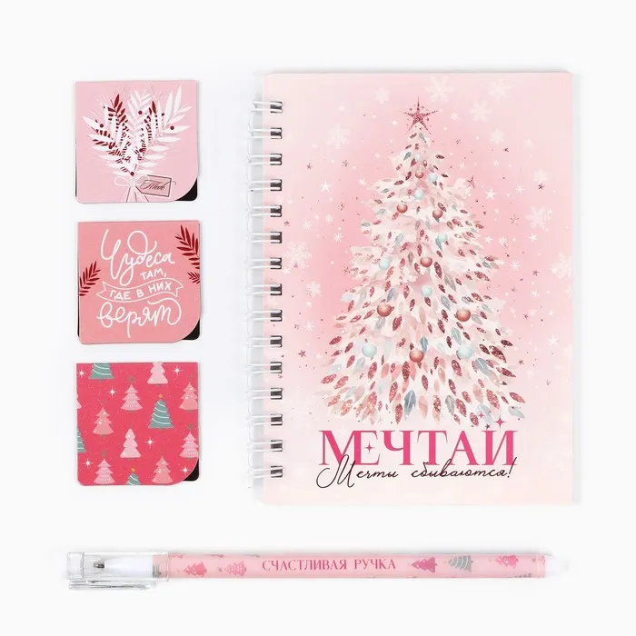 Подарочный набор новогодний, блокнот А6, 40 листов, ручка пластик, магнитные закладки 3 шт. «Мечтай! Мечты сбываются» — Характеристики