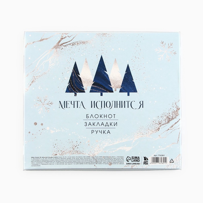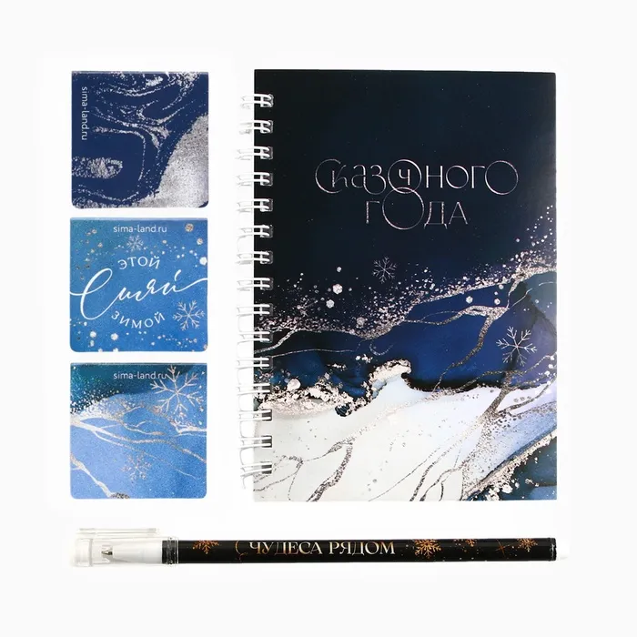 Подарочный набор новогодний, блокнот А6, 40 листов, ручка пластик, магнитные закладки 3 шт. «Сказочного года» — Характеристики