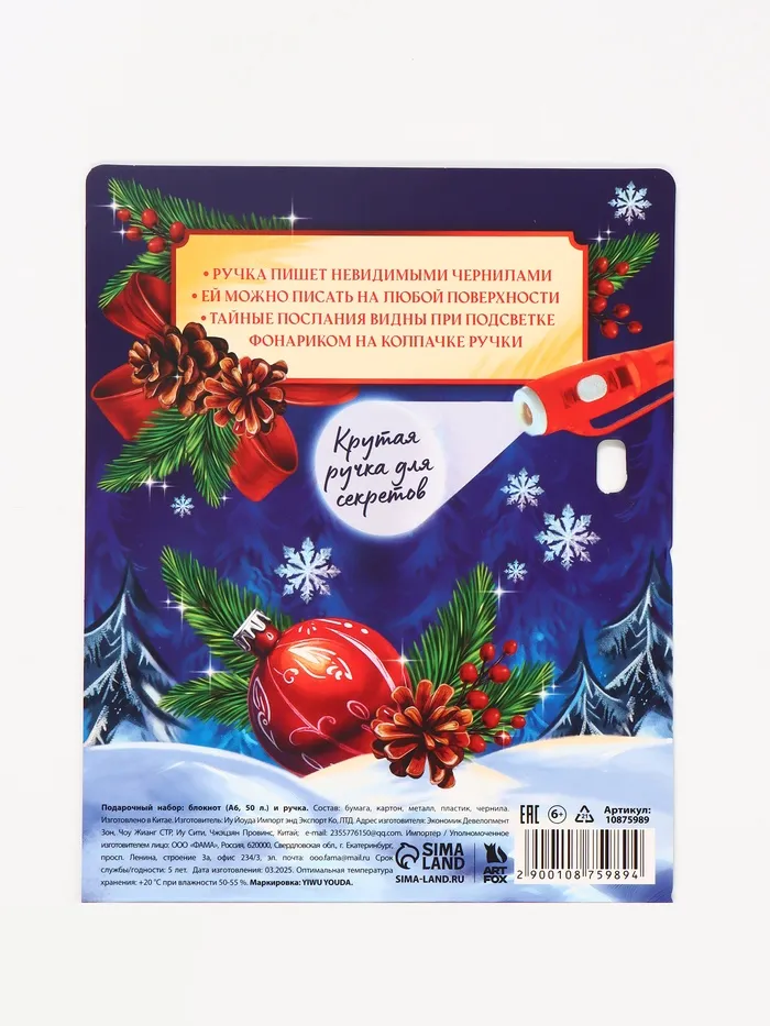 Подарочный набор новогодний, блокнот А6, 50 л., ручка шпион «С Новым годом!» — Характеристики