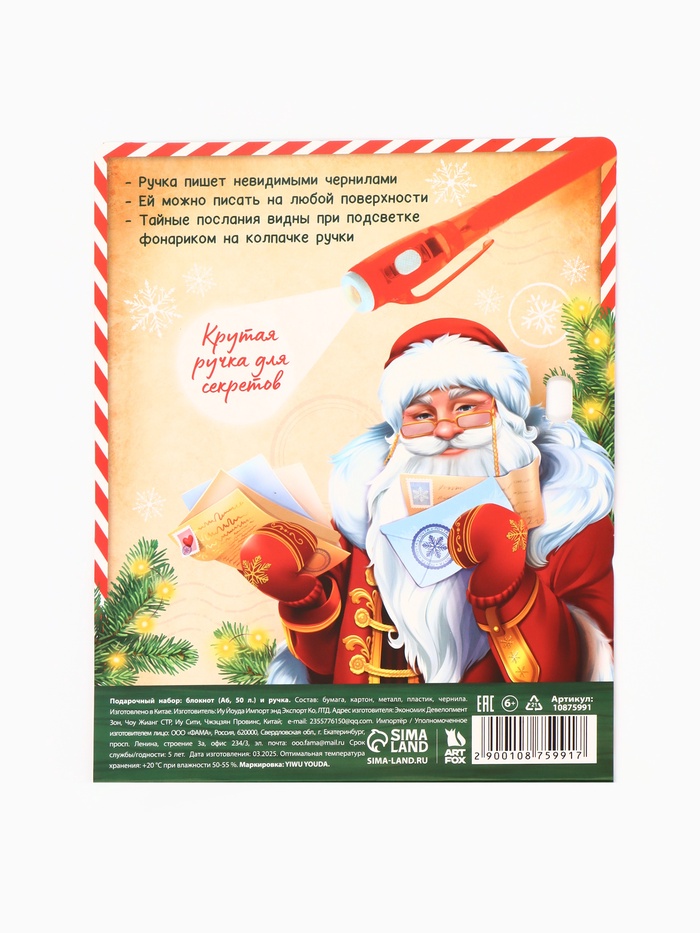 Подарочный набор новогодний, блокнот А6, 50 л., ручка шпион «Волшебная почта» — Характеристики