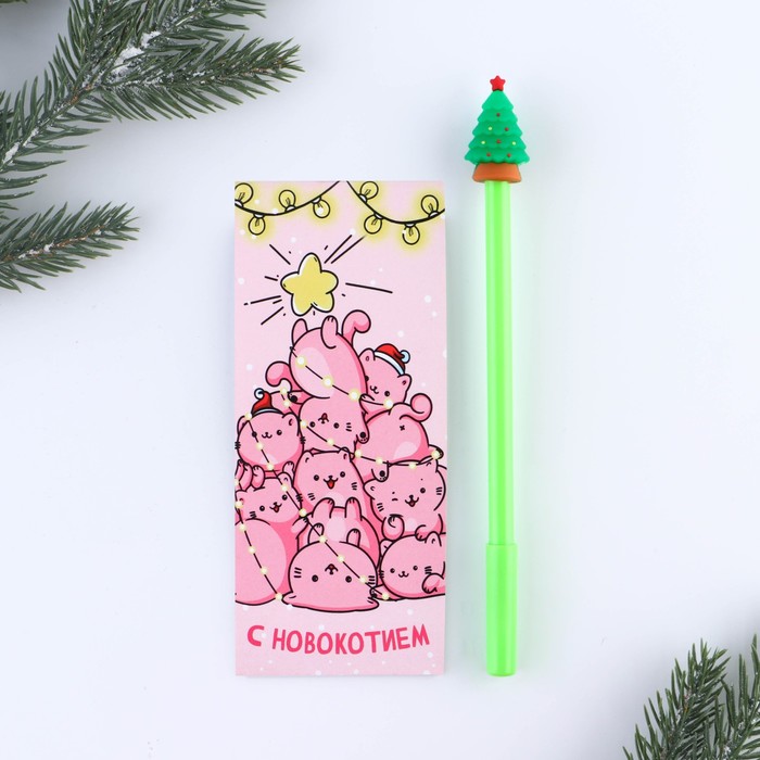 Подарочный набор новогодний, блокнот и фигурная ручка «С новокотием» — Характеристики