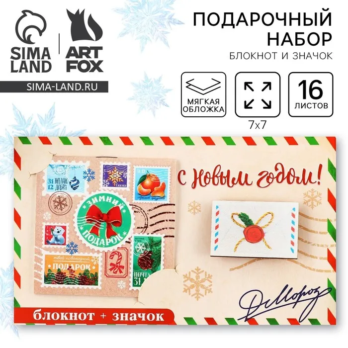 Подарочный набор новогодний, блокнот и значок «Зимний подарок» — Характеристики