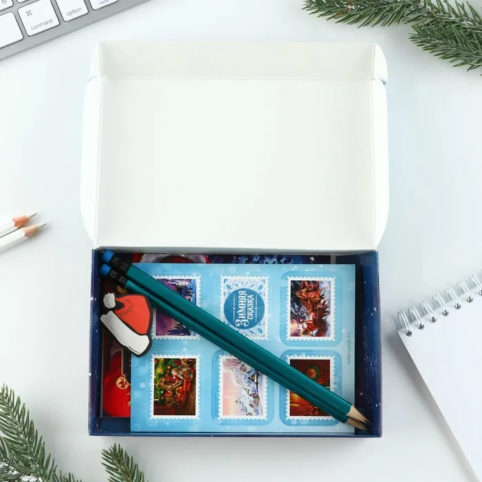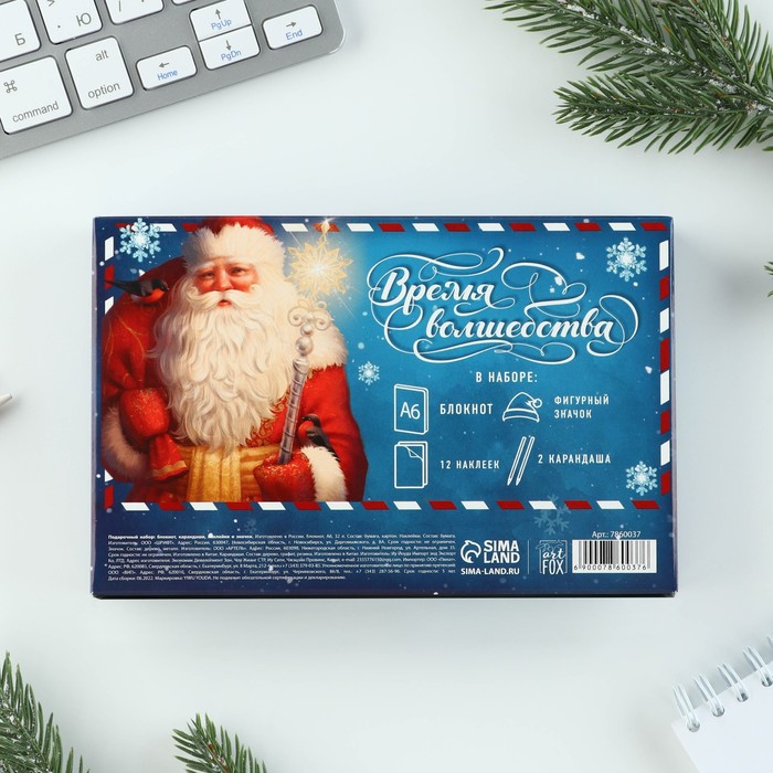 Подарочный набор новогодний, блокнот, карандаши простые 2 шт., наклейки, значок «Сказка» — Характеристики