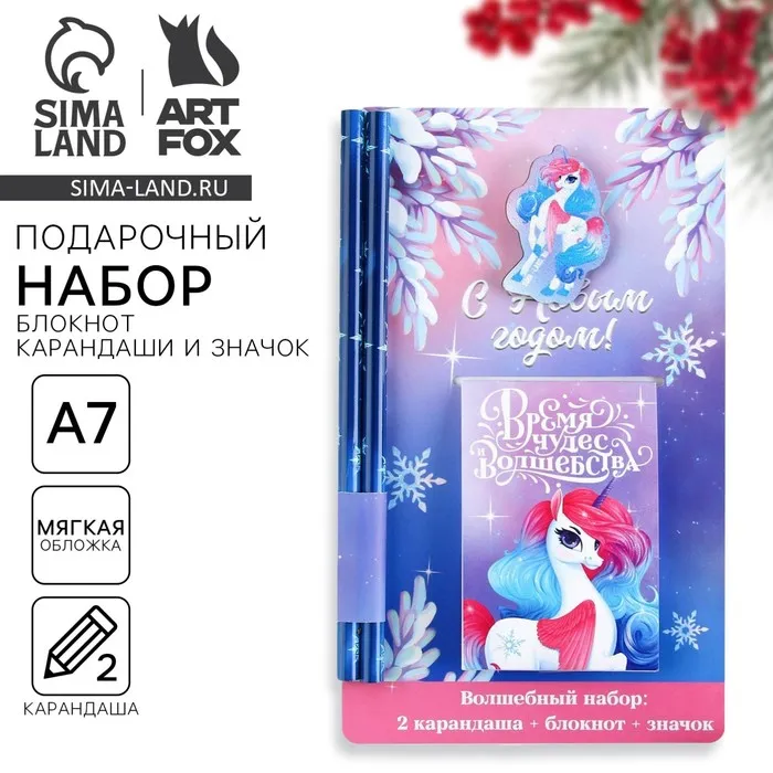 Подарочный набор новогодний, блокнот, карандаши простые 2 шт., значок «С новым годом» — Характеристики