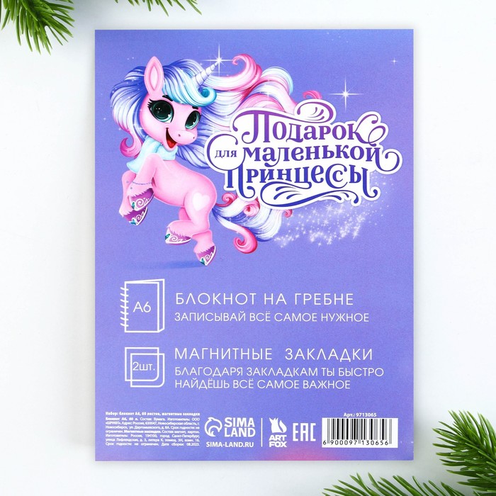 Подарочный набор новогодний, блокнот на спирали А6, 60 листов и магнитные закладки 2 шт. «Для девочек»