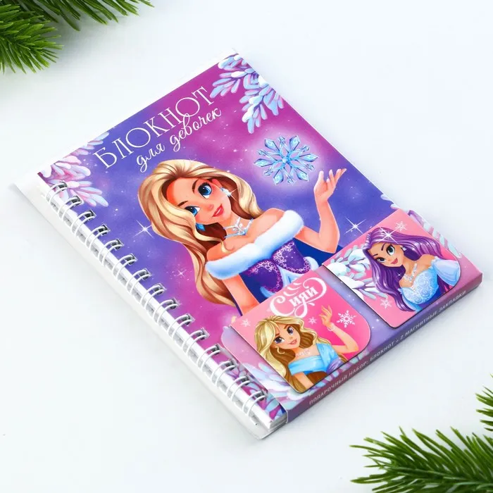 Подарочный набор новогодний, блокнот на спирали А6, 60 листов и магнитные закладки 2 шт. «Для девочек» — Характеристики