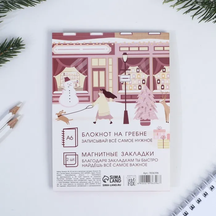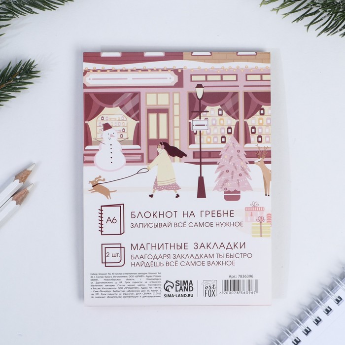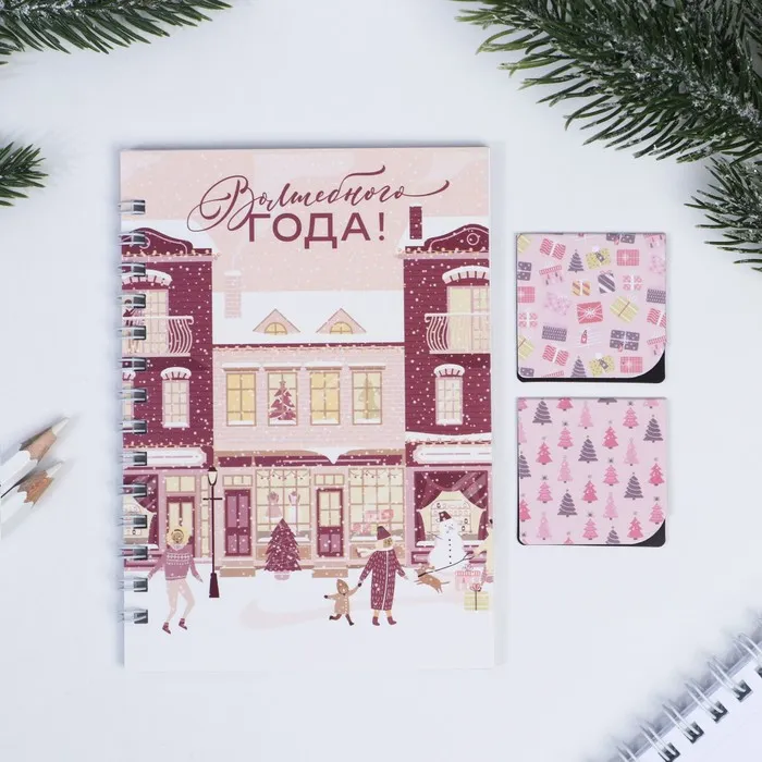 Подарочный набор новогодний, блокнот на спирали А6, 60 листов и магнитные закладки 2 шт. «Волшебного года!» — Характеристики