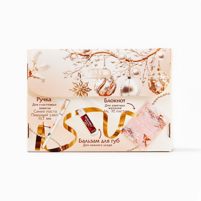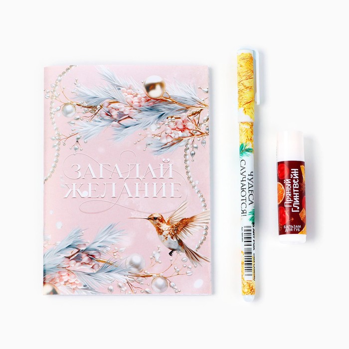 Подарочный набор новогодний, блокнот, ручка и бальзам для губ «Загадай желание» — Характеристики