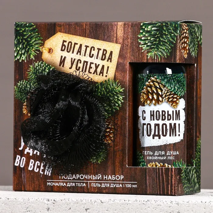 Подарочный набор новогодний «Богатства и успеха», гель для душа 100 мл и мочалка для тела, Чистое счастье — Характеристики