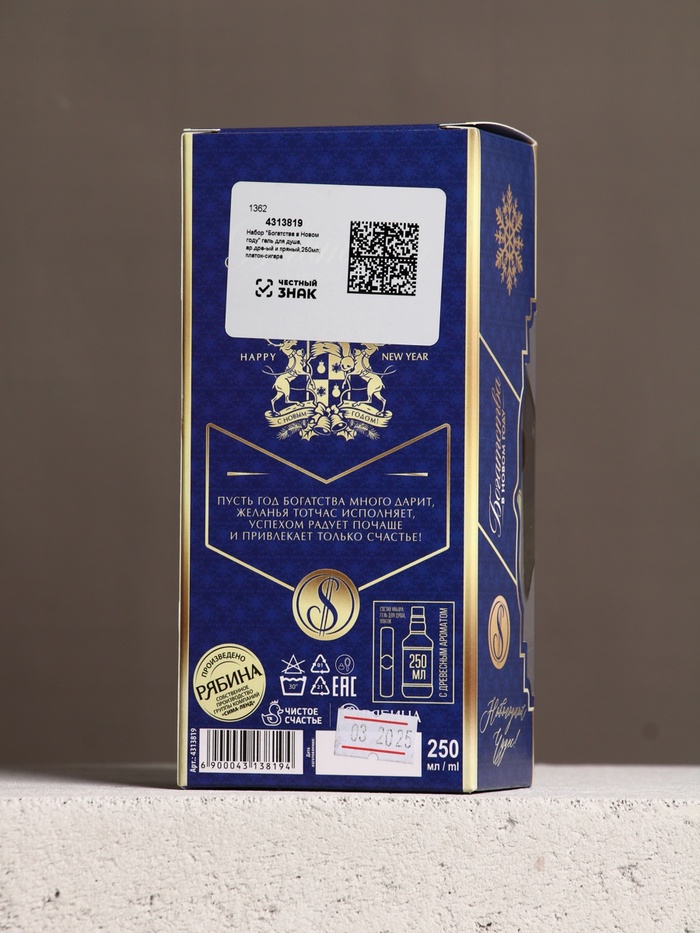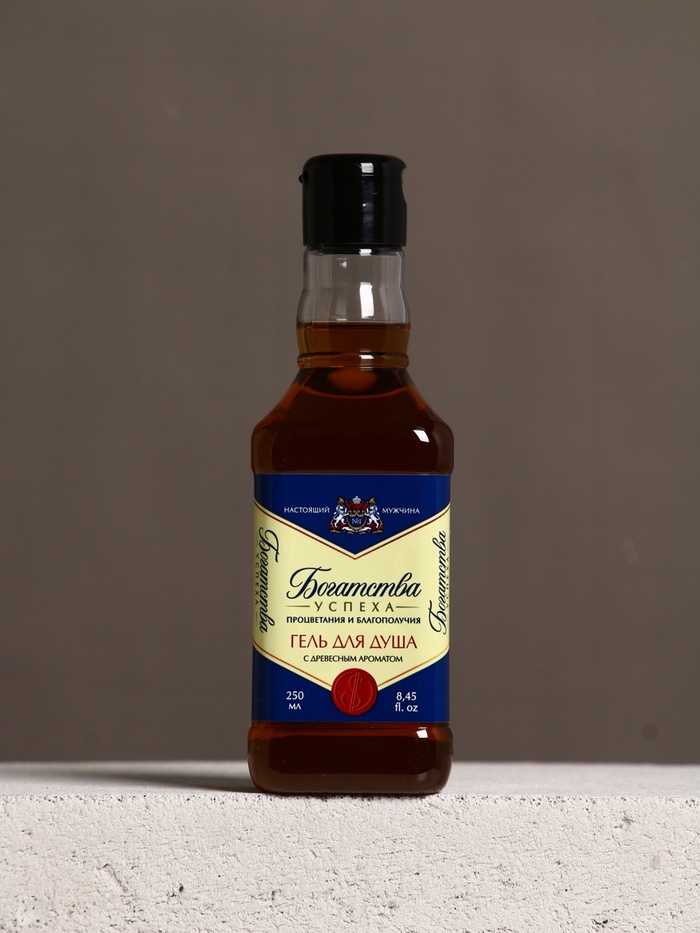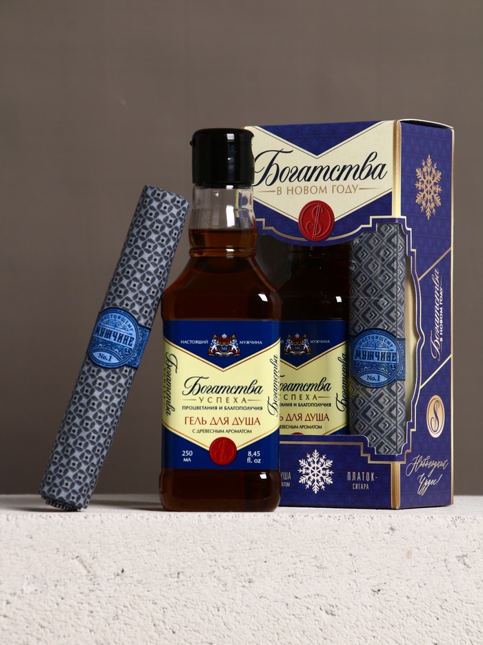 Подарочный набор новогодний «Богатства в Новом году»: гель для душа во флаконе виски, аромат древесный, 250 мл; платок в форме сигары — Характеристики