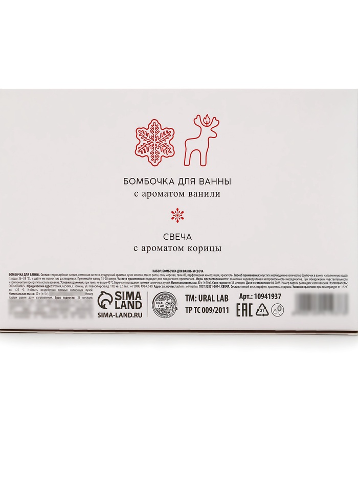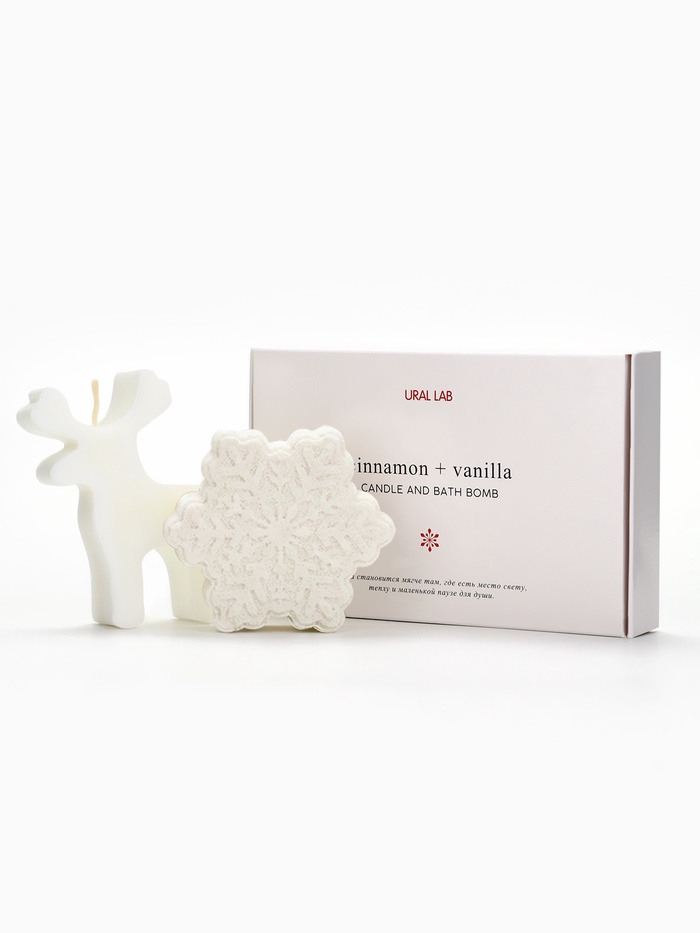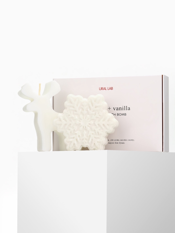 Подарочный набор новогодний: бомбочка снежинка и фигурная свеча олень, URAL LAB — Характеристики