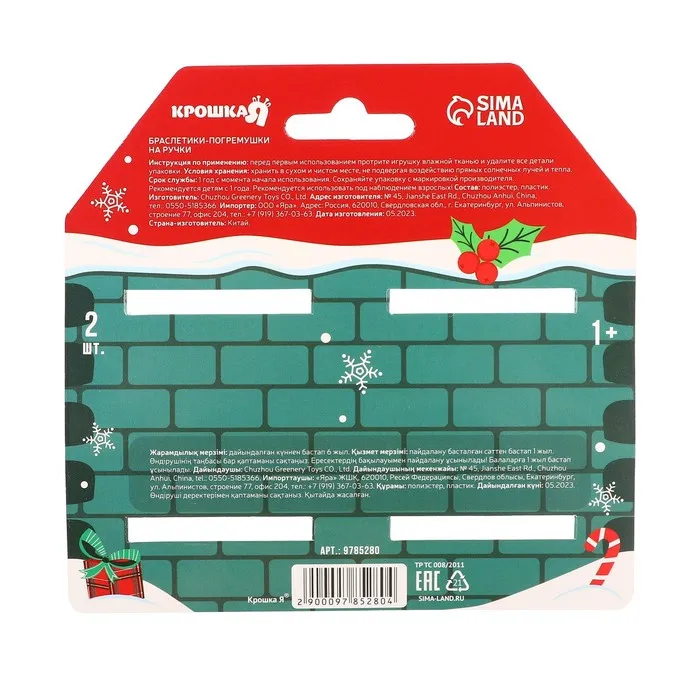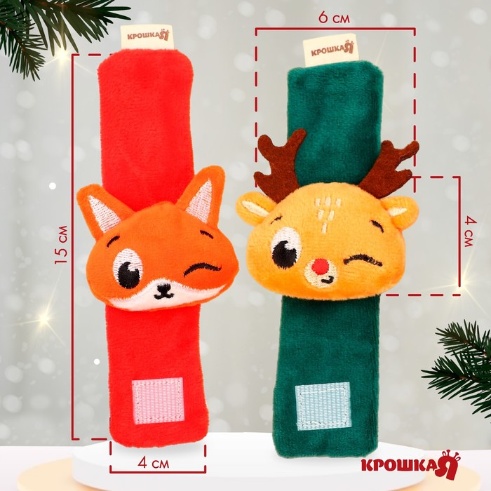 Подарочный набор новогодний: браслетики - погремушки «Лисичка и оленёнок», 2 шт., Крошка Я — Характеристики