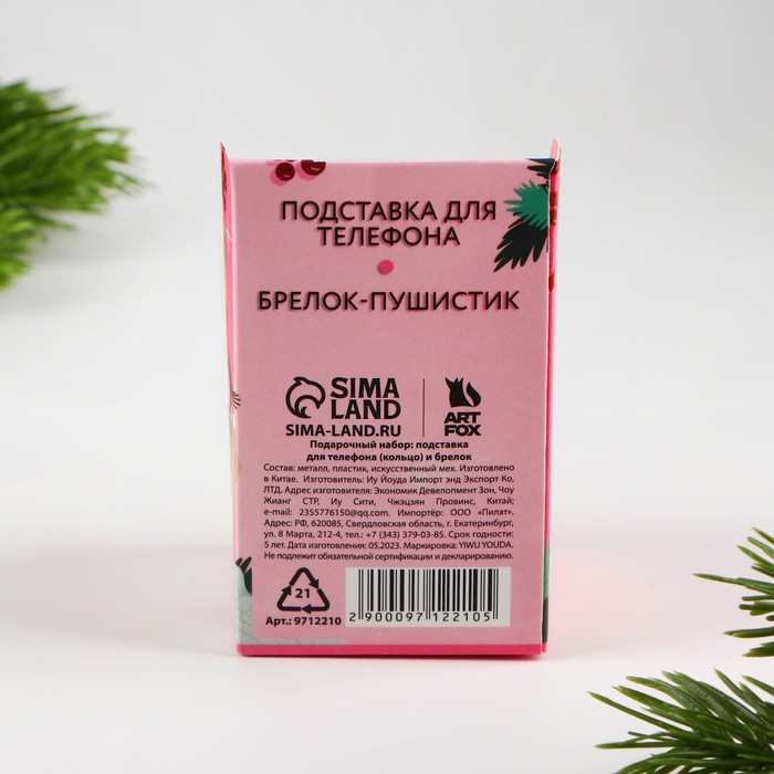 Подарочный набор новогодний, брелок-пушистик, кольцо-подставка для телефона «Новогодних чудес!» — Характеристики