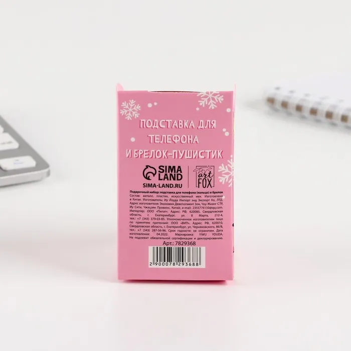 Подарочный набор новогодний, брелок-пушистик, кольцо-подставка для телефона «С Новокотием!» — Характеристики