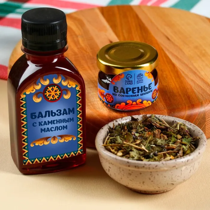 Состав: шиповник, вода очищенная, мёд, черноплодная рябина, аир, боровая матка, золотой корень, лабазник, красная щётка, хвощ, валериана, ромашка, смородина чёрная, кипрей, каменное масло.