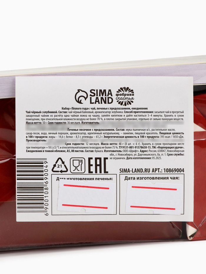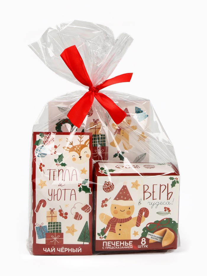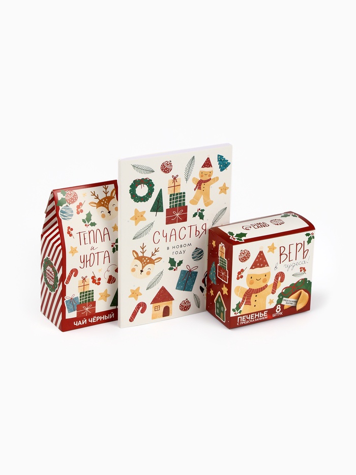 Подарочный набор новогодний: чай 50 г, печенье с предсказанием 8 шт., ежедневник «Тепла и уюта» — Характеристики