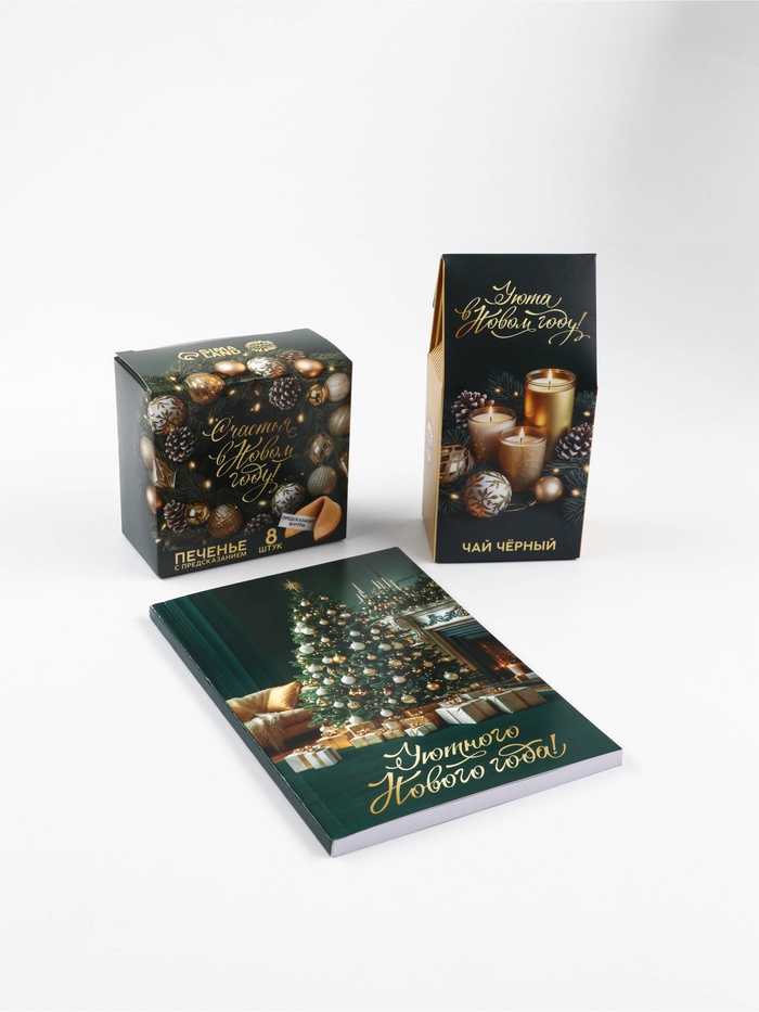 Подарочный набор новогодний: чай 50 г, печенье с предсказанием, ежедневник «Уюта в Новом году» — Характеристики