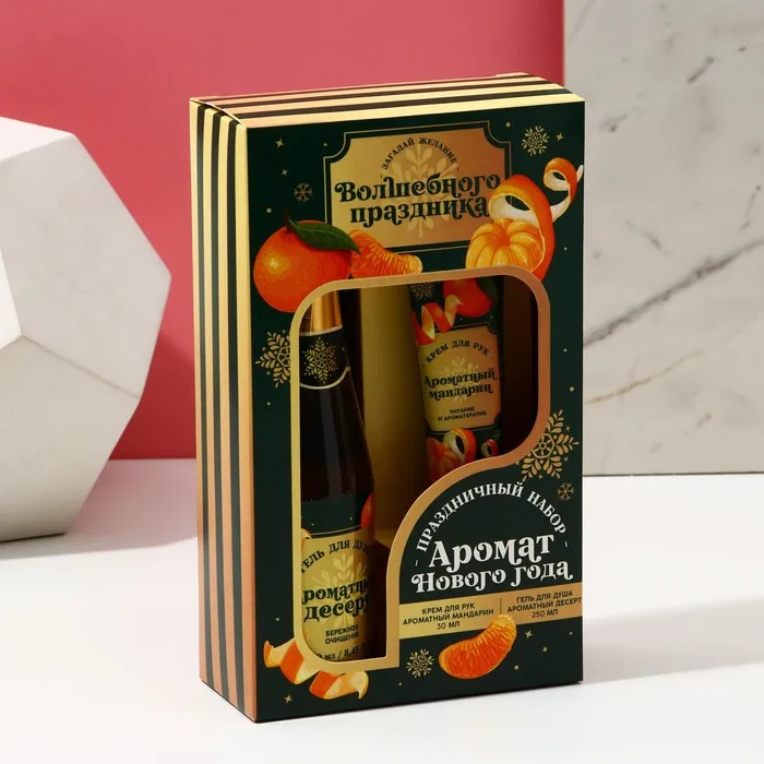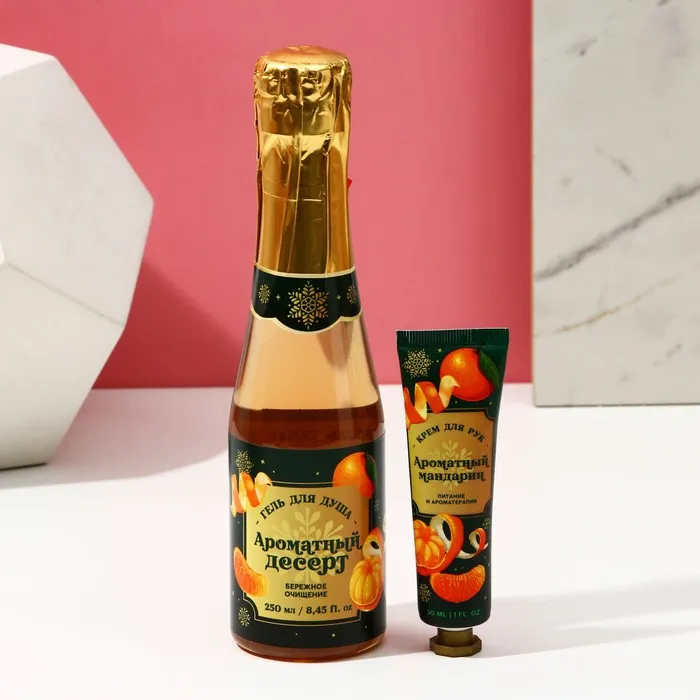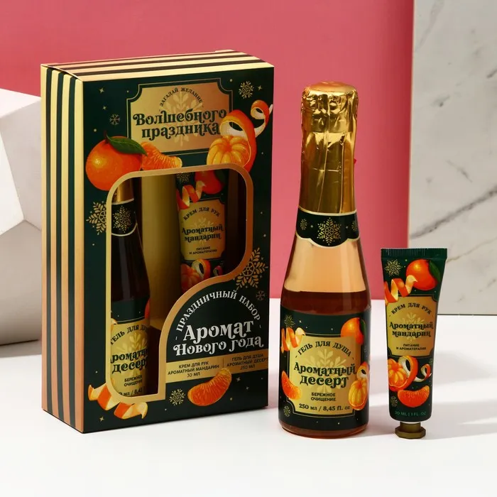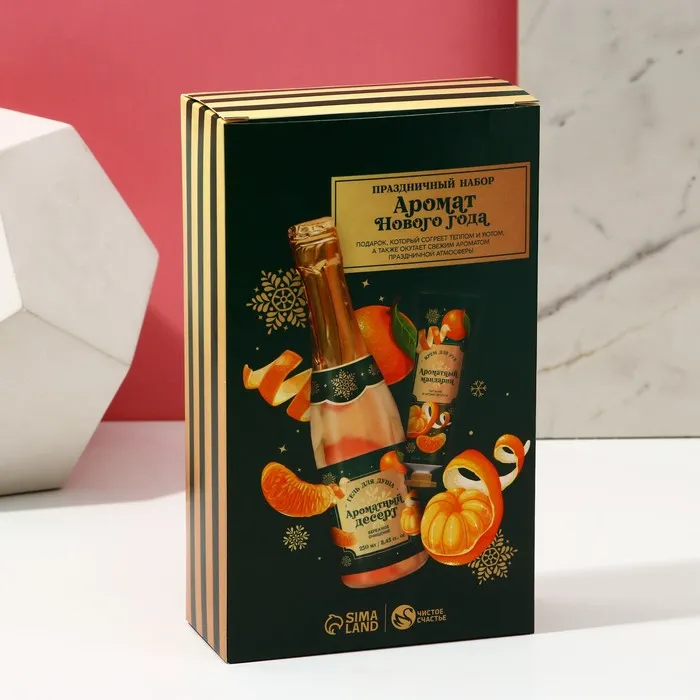 Подарочный набор новогодний ЧИСТОЕ СЧАСТЬЕ «Аромат праздника»: гель для душа шампанское 250 мл и крем для рук 30 мл — Характеристики