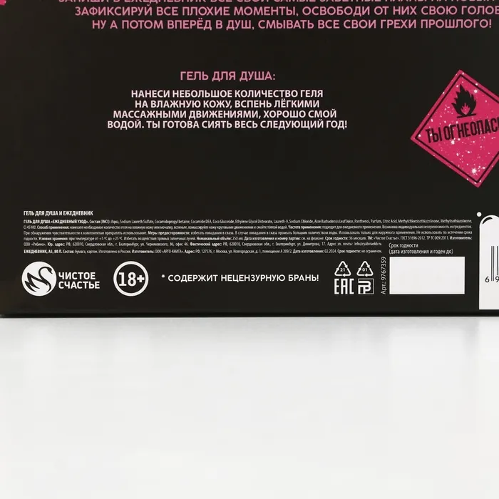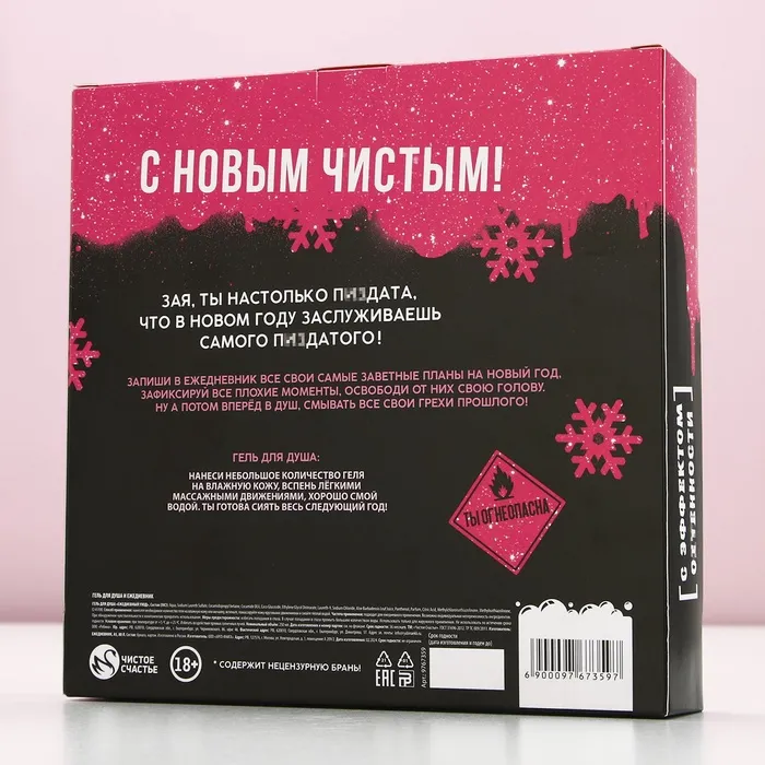 Подарочный набор новогодний «Чистой кисе», гель для душа 250 мл и ежедневник, 18+, Чистое счастье — Характеристики