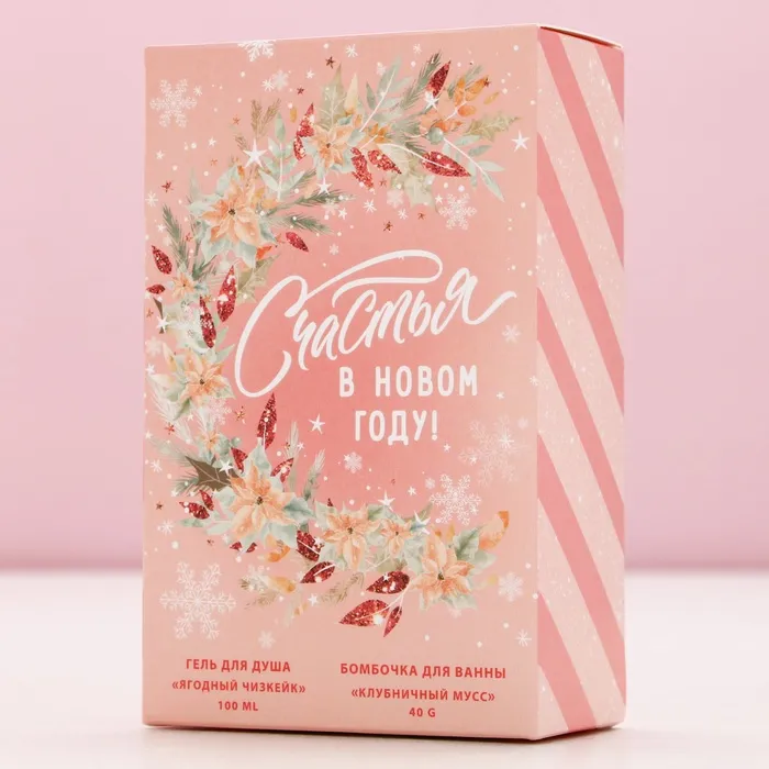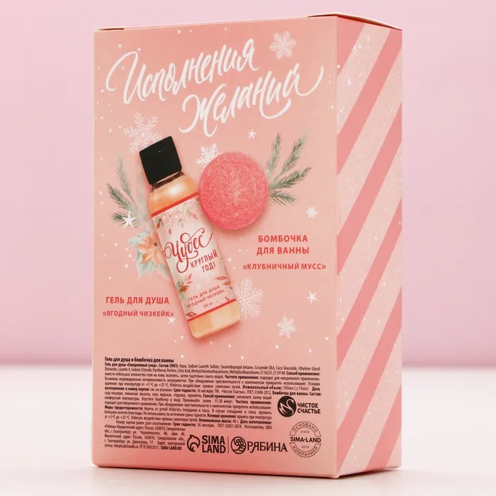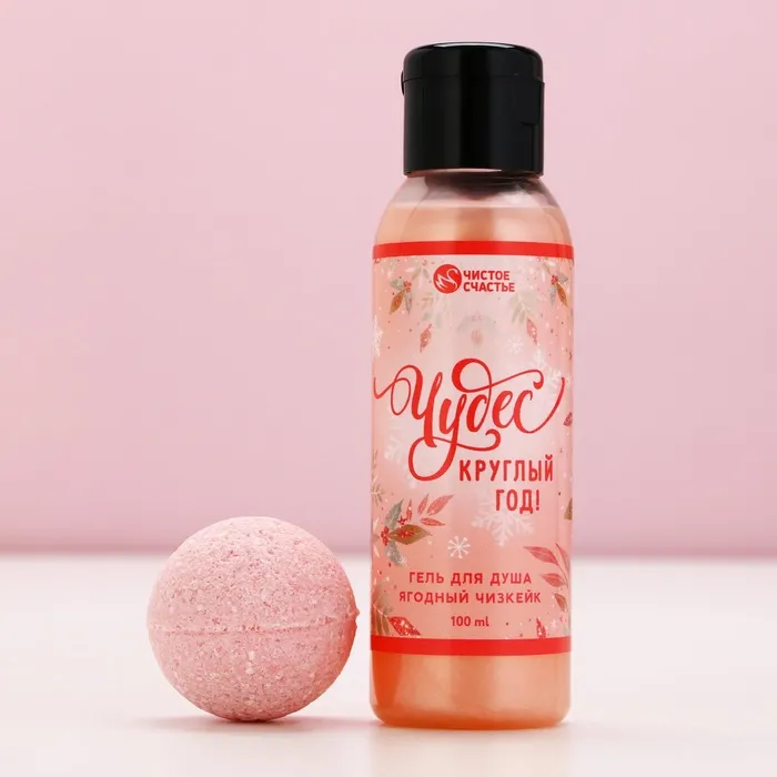 Подарочный набор новогодний «Чудес»: гель для душа 100 мл и бомбочка для ванны 40 г, Чистое счастье — Характеристики