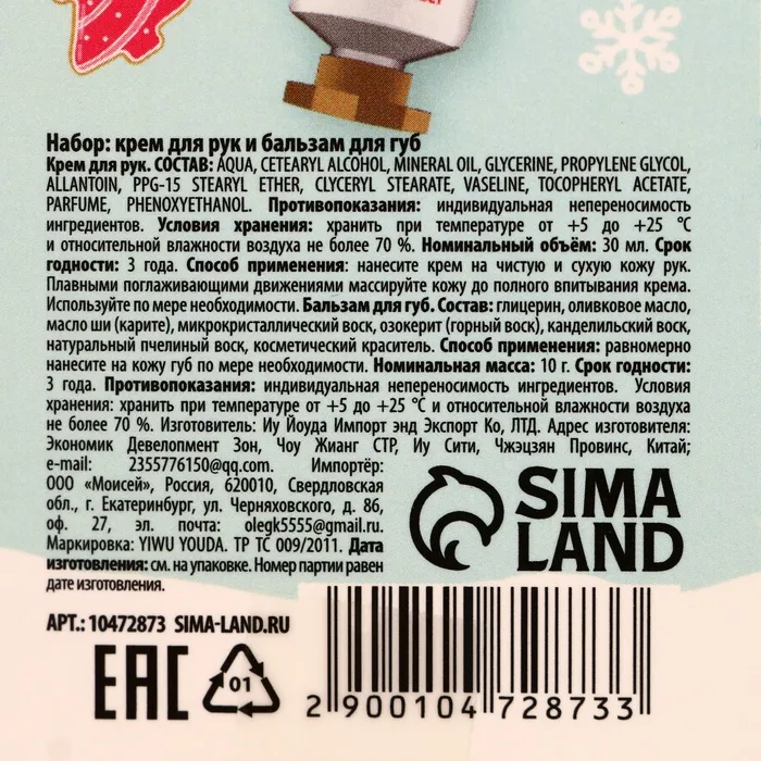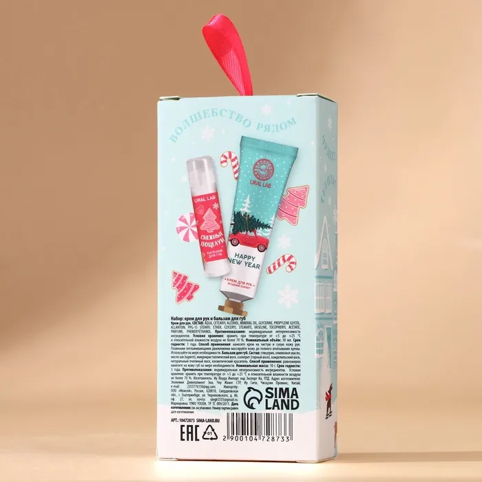 Подарочный набор новогодний «Чудесных моментов»: крем для рук 30 мл и бальзам для губ 10 г, URAL LAB — Характеристики