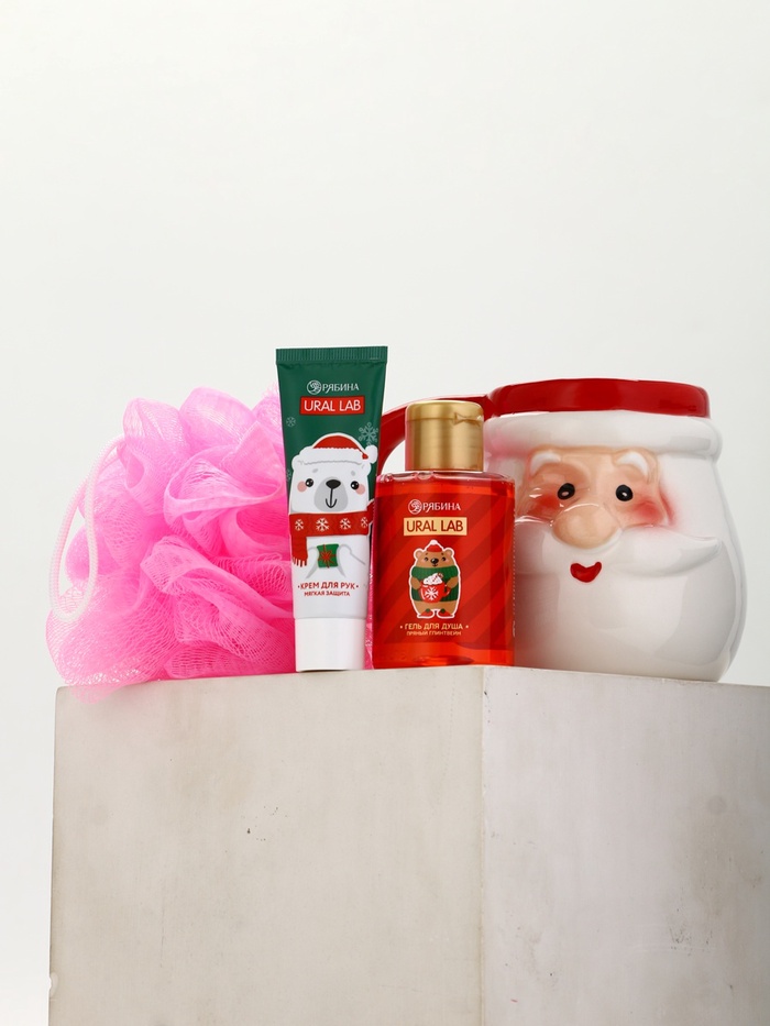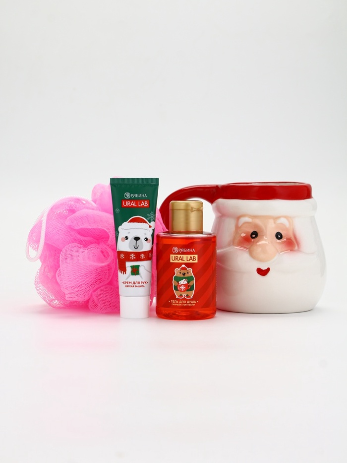 Подарочный набор новогодний «Дед Мороз», гель для душа, кружка, мочалка и крем для рук, URAL LAB — Характеристики
