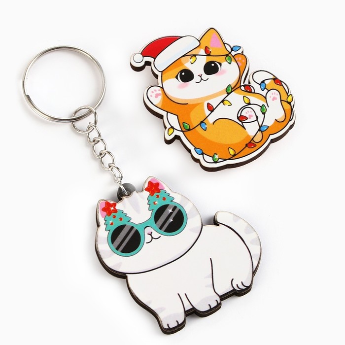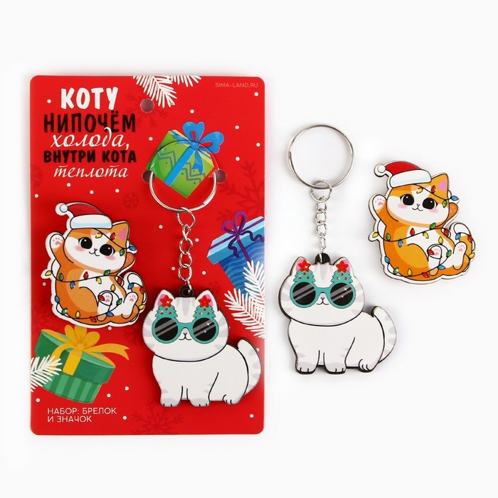 Подарочный набор новогодний детский «Котики»: брелок и значок — Характеристики
