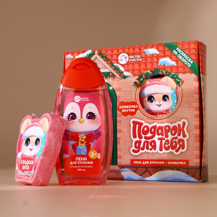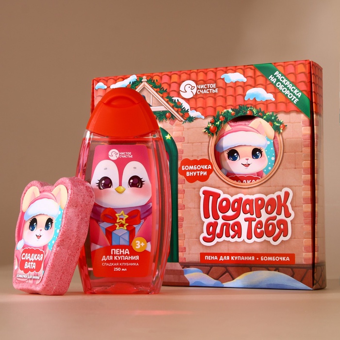 Подарочный набор новогодний детский «Подарочек для тебя», пена для купания 250 мл и бомбочка для ванны 110 г, Чистое счастье — Характеристики