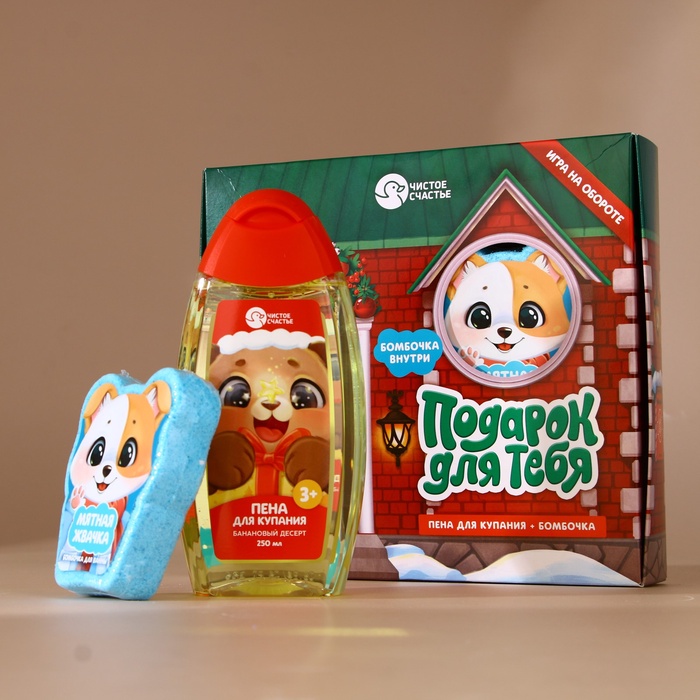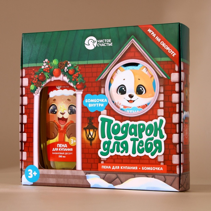 Подарочный набор новогодний детский «Подарок для тебя», пена для купания 250 мл и бомбочка для ванны 110 г, Чистое счастье — Характеристики