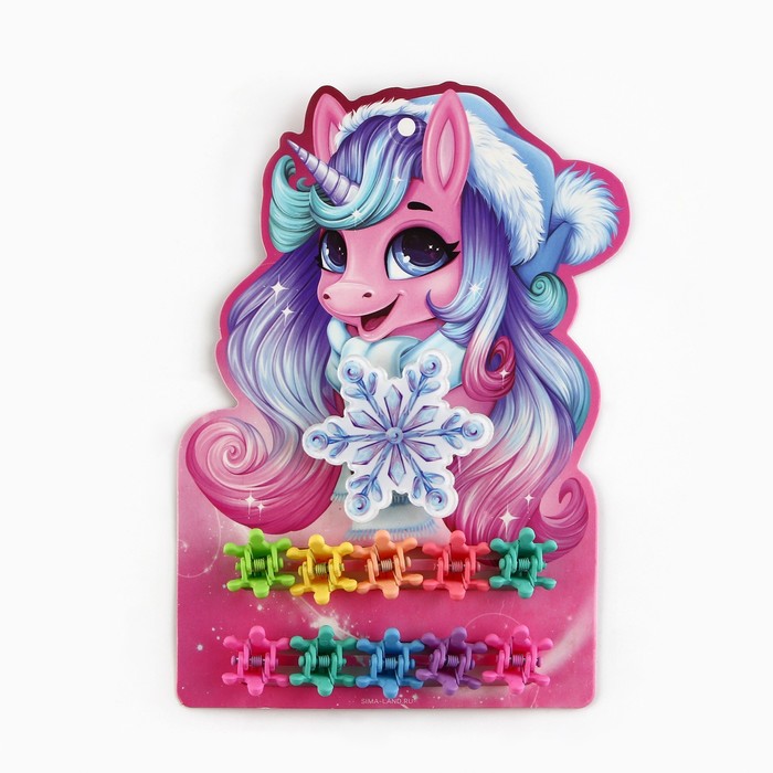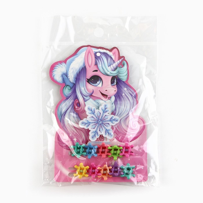 Подарочный набор новогодний для девочки «Единорог»: заколка и крабики для волос
