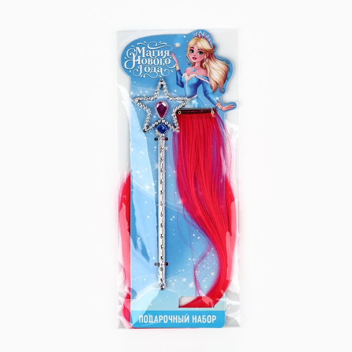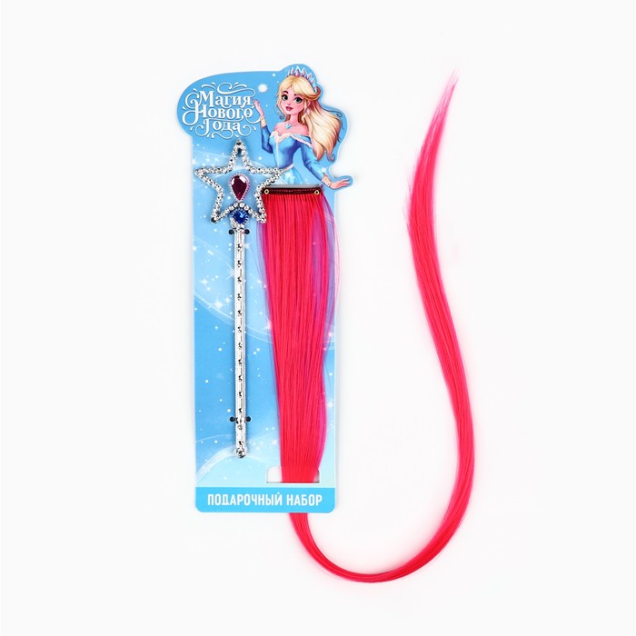 Подарочный набор новогодний для девочки «Новогодняя магия»: волшебная палочка и цветная прядь для волос