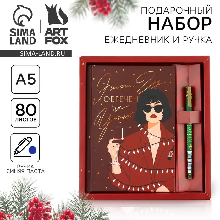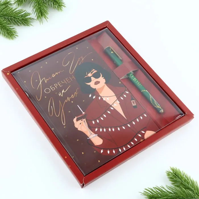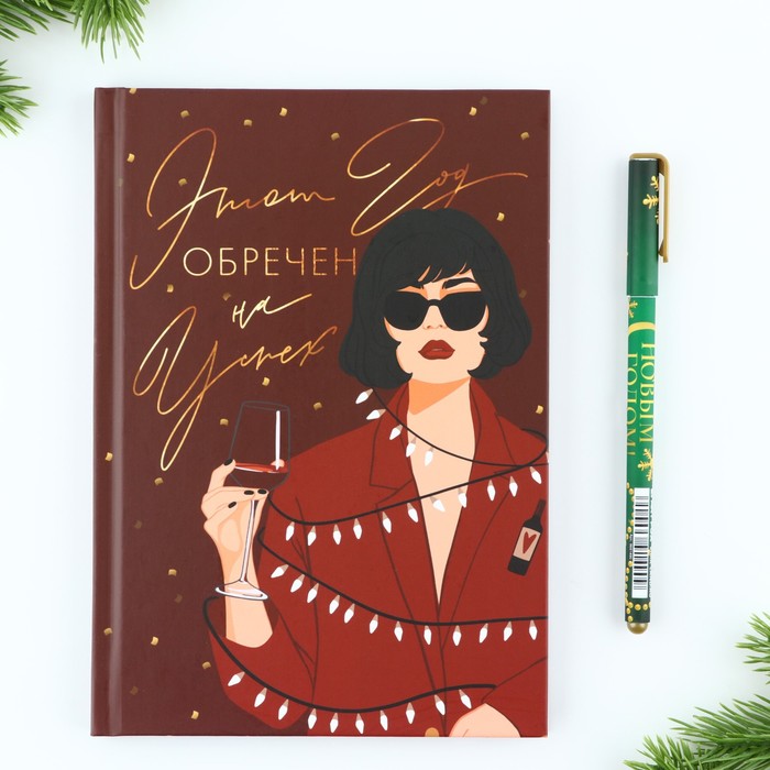 Подарочный набор новогодний, ежедневник А5, 80 листов, ручка синяя паста «Этот год обречен на успех» — Характеристики