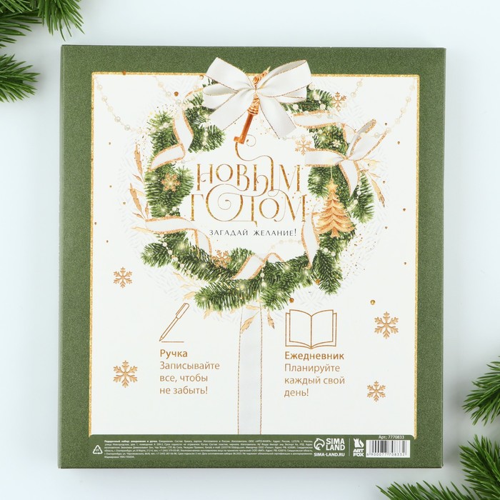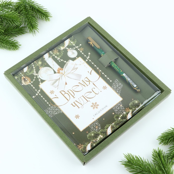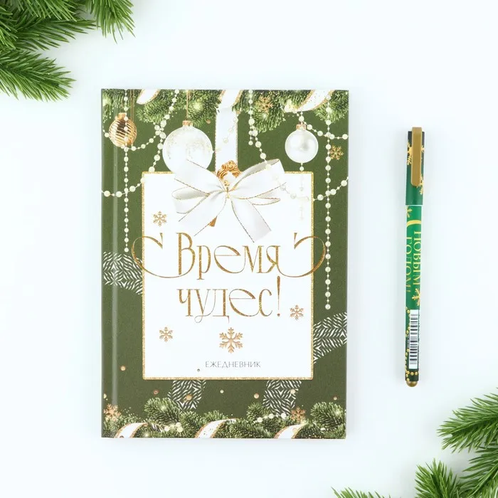 Подарочный набор новогодний, ежедневник А5, 80 листов, ручка синяя паста «Время чудес» — Характеристики
