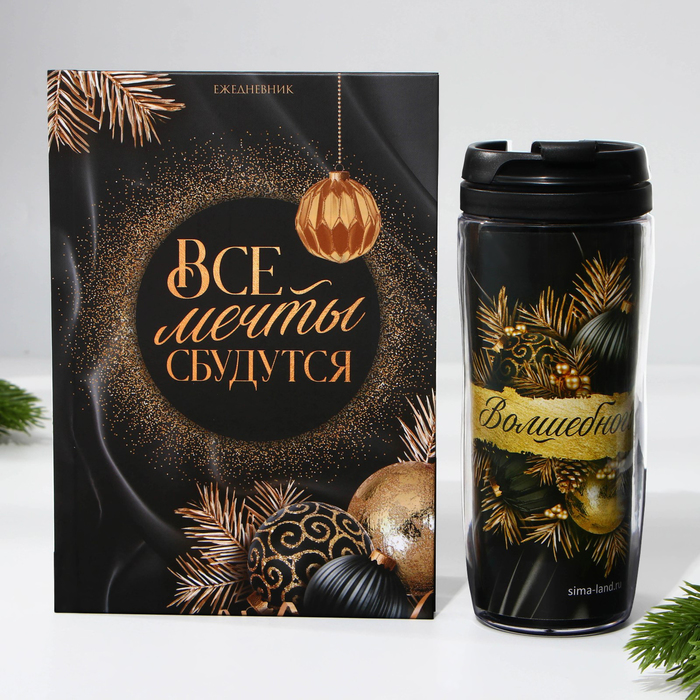 Подарочный набор новогодний, ежедневник А5, 80 листов, термостакан 350 мл «Все мечты сбудутся» — Характеристики