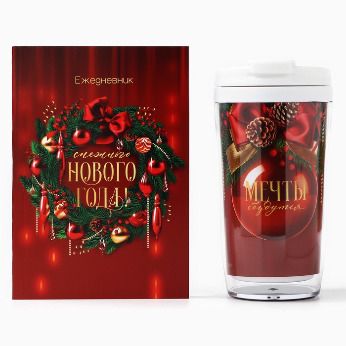 Подарочный набор новогодний, ежедневник А6, 80 листов, термостакан 250 мл «Счастья в Новом году» — Характеристики