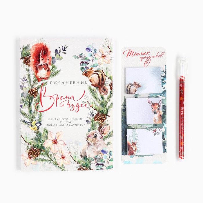 Подарочный набор новогодний, ежедневник, стикеры, ручка «Чудес в Новом году» — Характеристики