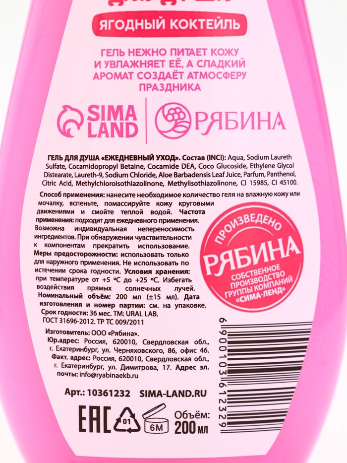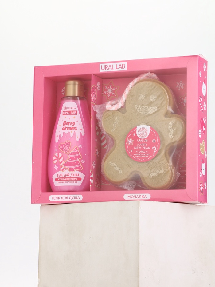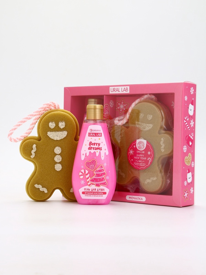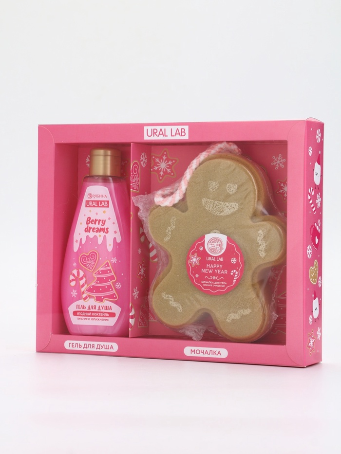 Подарочный набор новогодний: гель для душа и мочалка для тела, аромат ягодный коктейль, URAL LAB — Характеристики