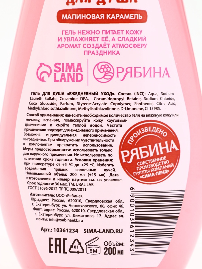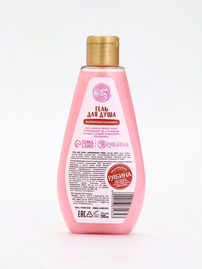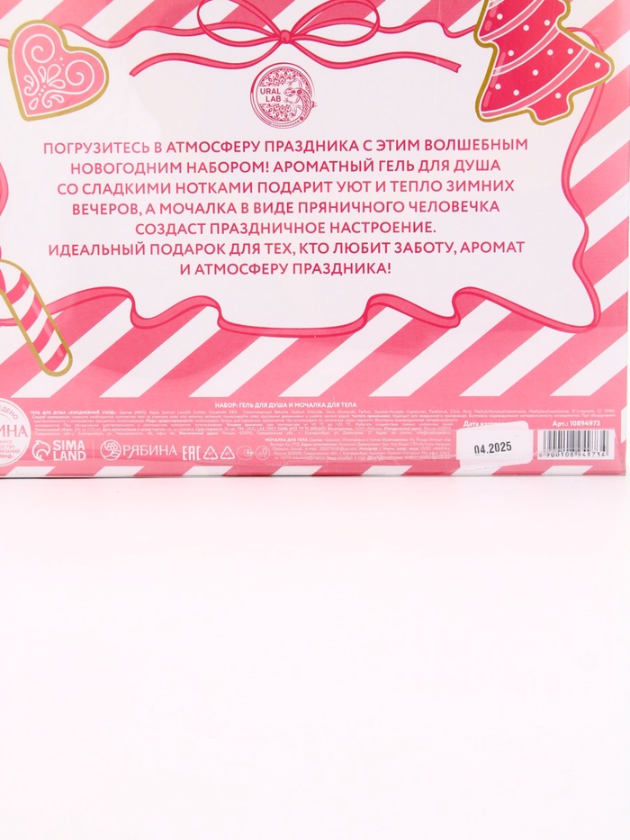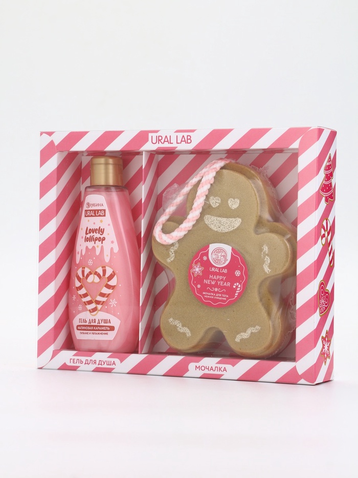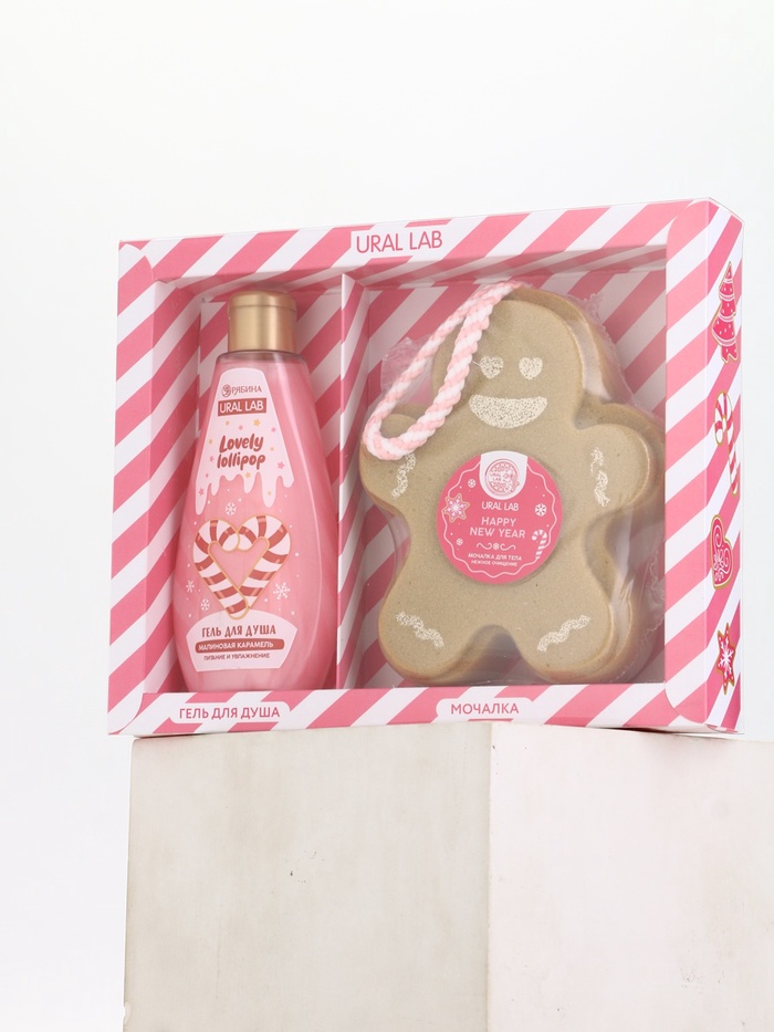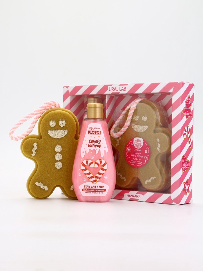Подарочный набор новогодний: гель для душа и мочалка для тела, аромат малиновая карамель, URAL LAB — Характеристики