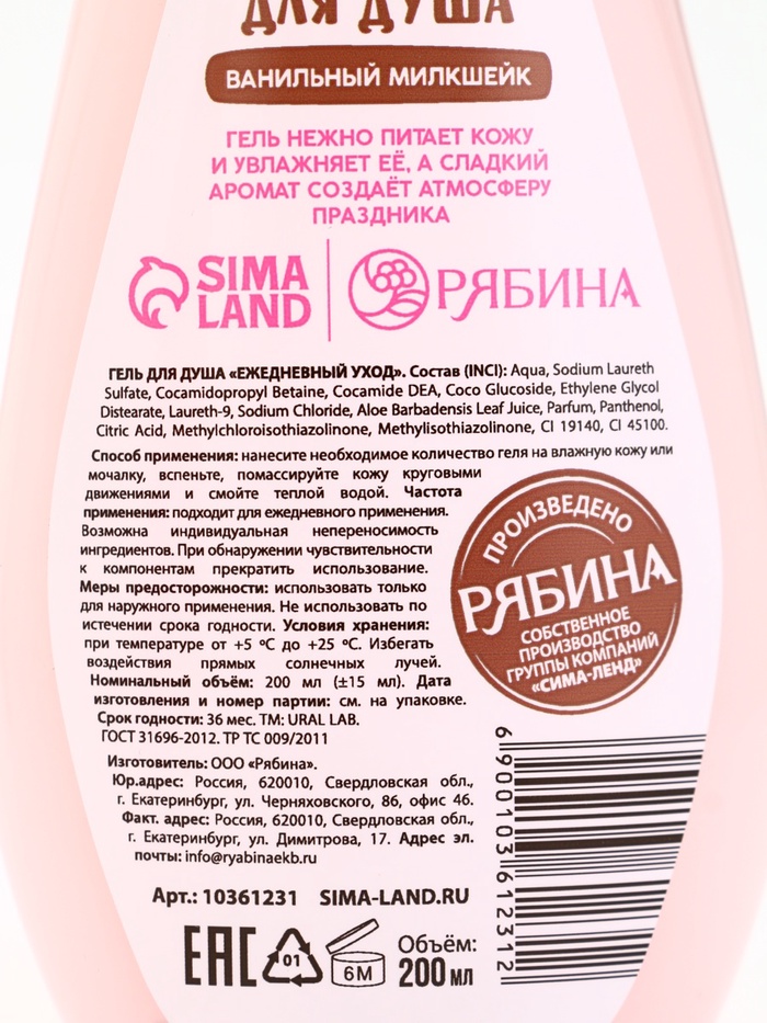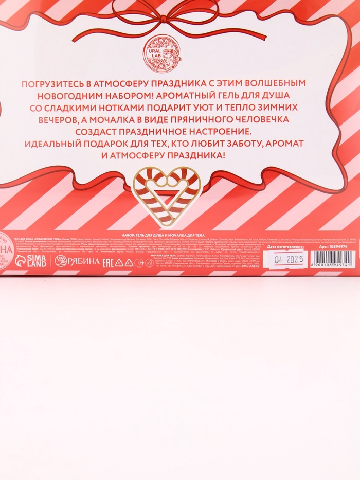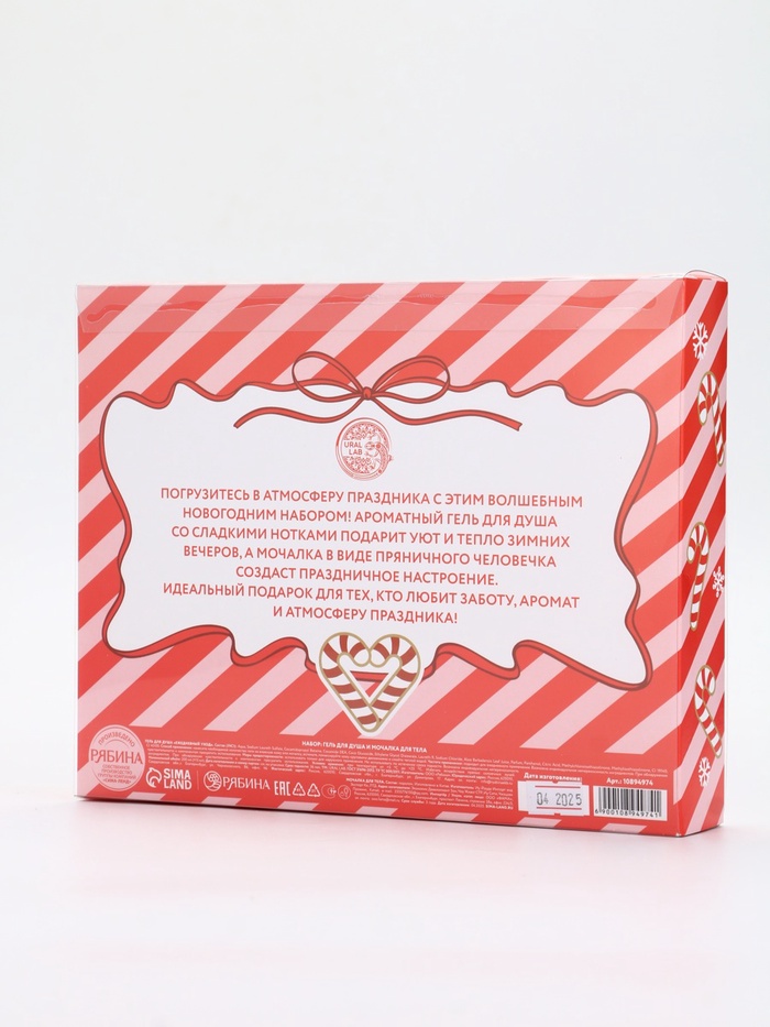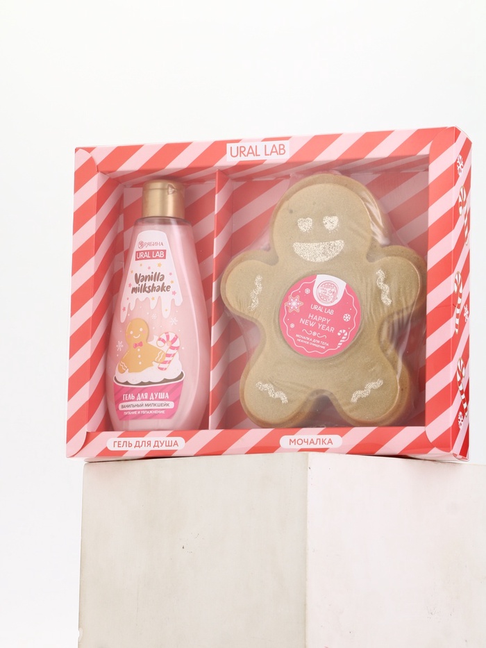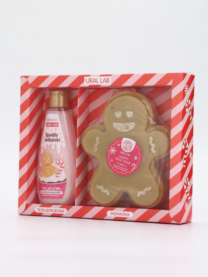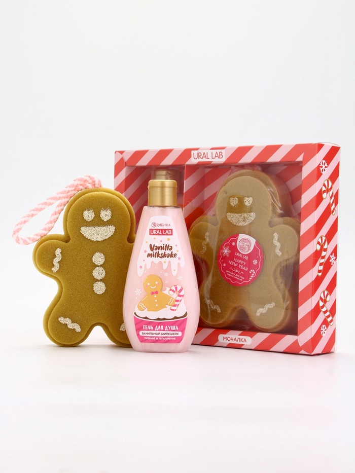 Подарочный набор новогодний: гель для душа и мочалка для тела, аромат ванильный милкшейк, URAL LAB — Характеристики