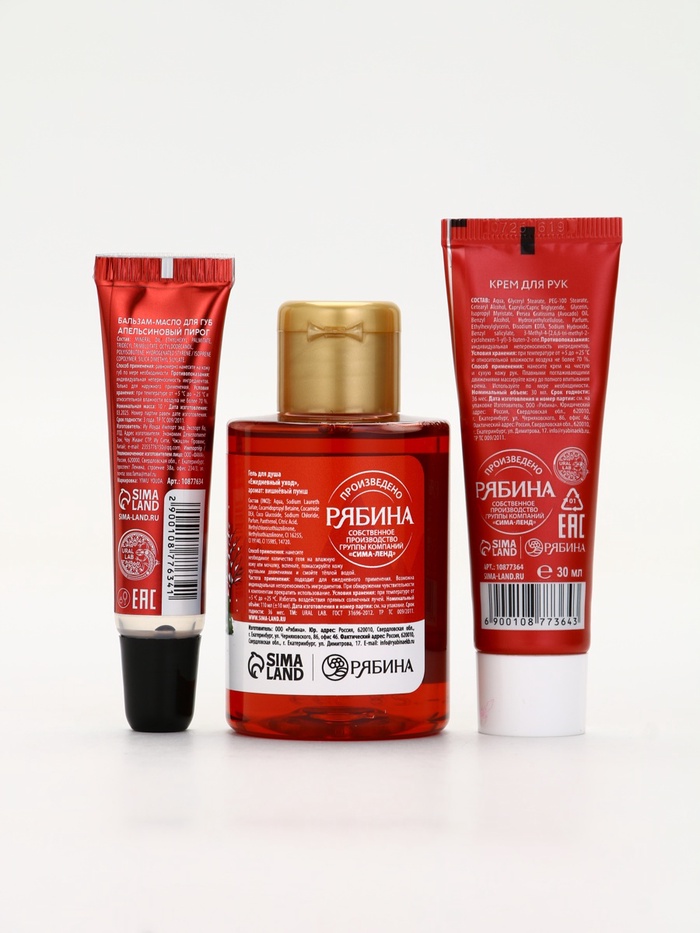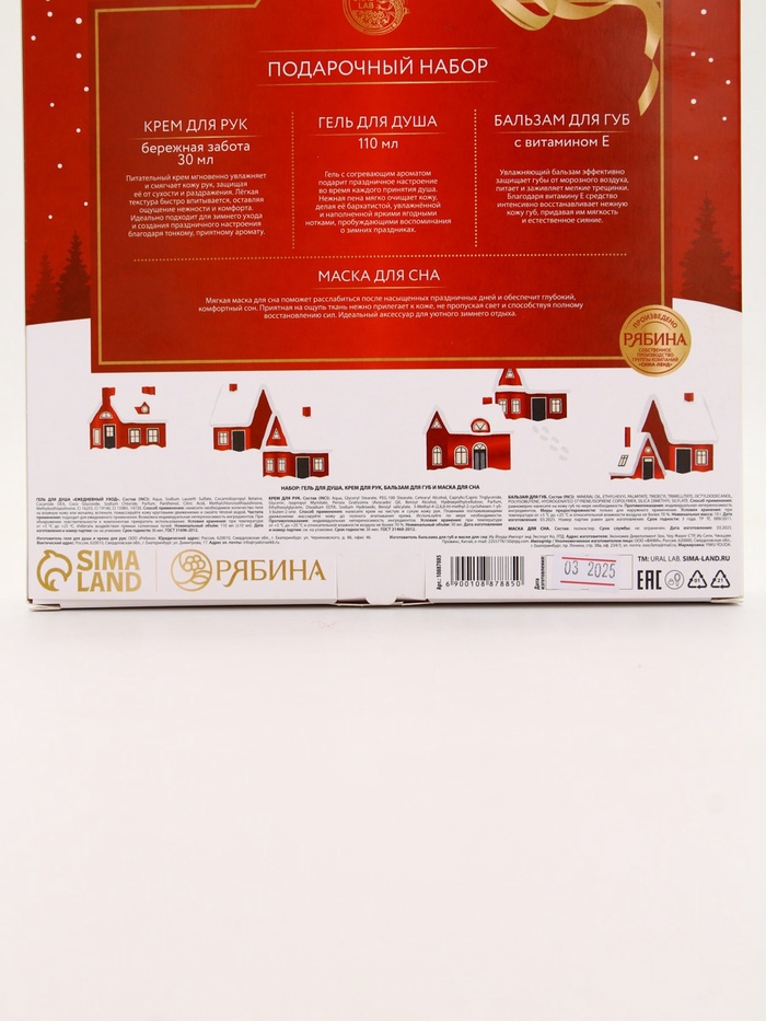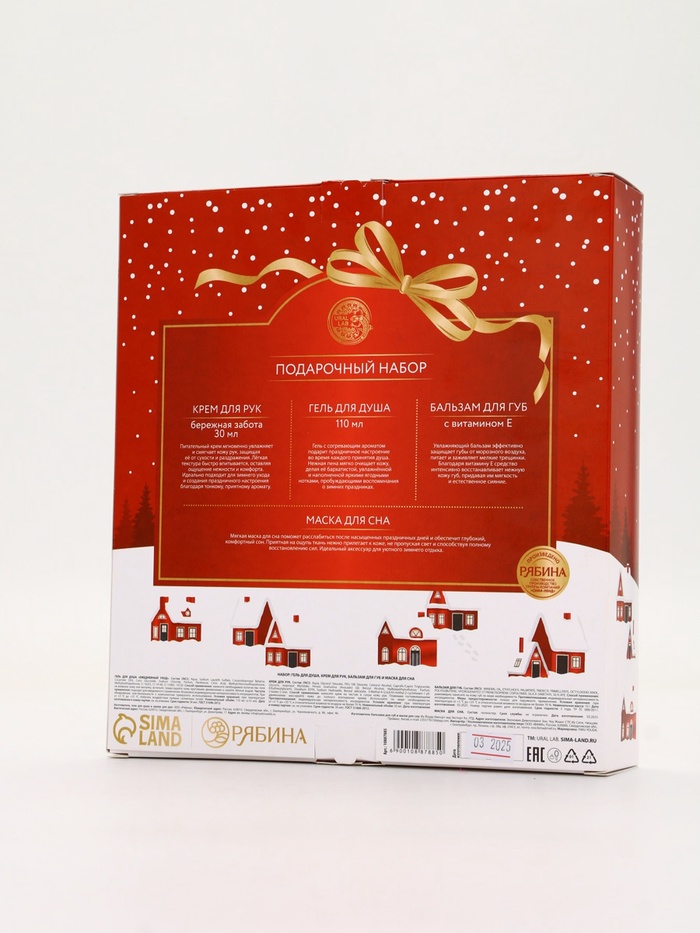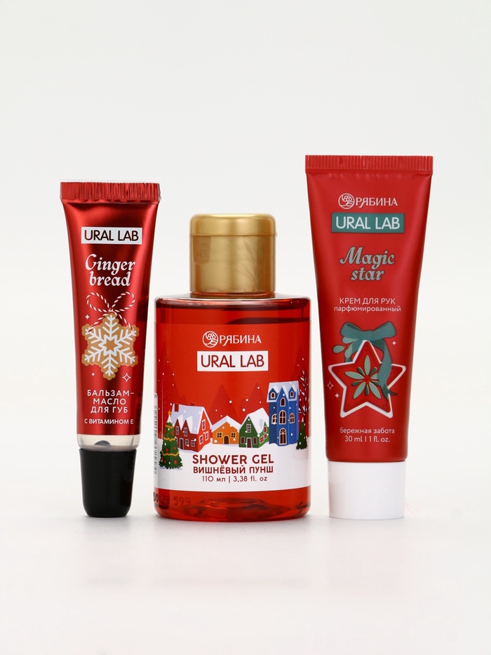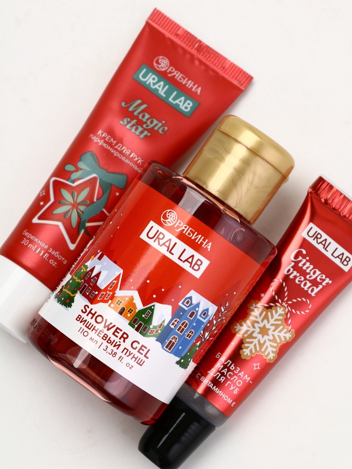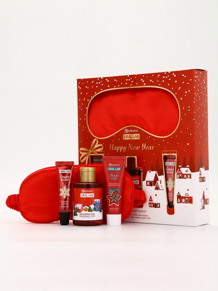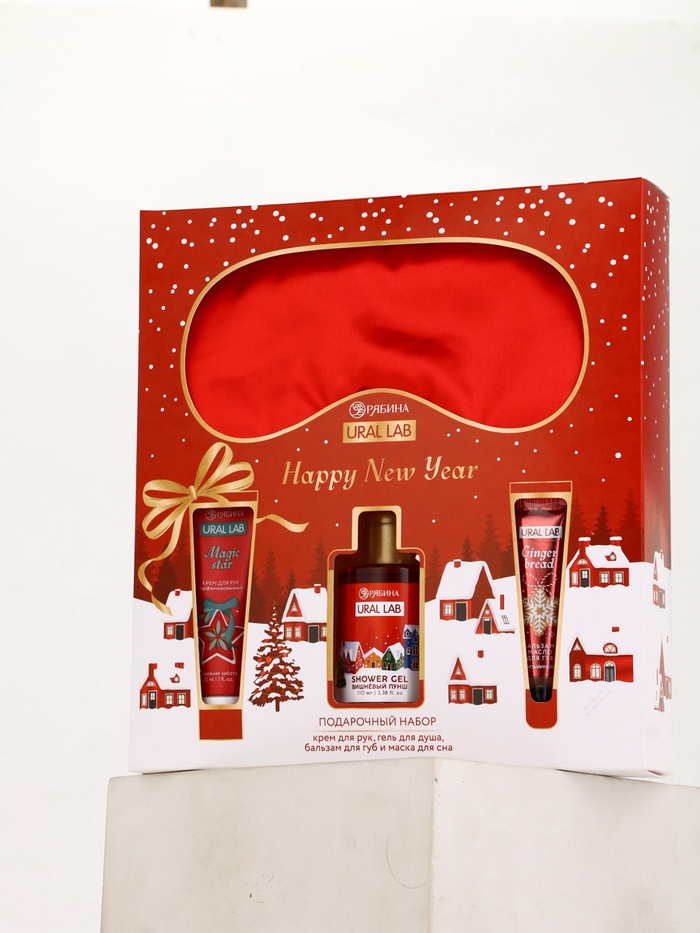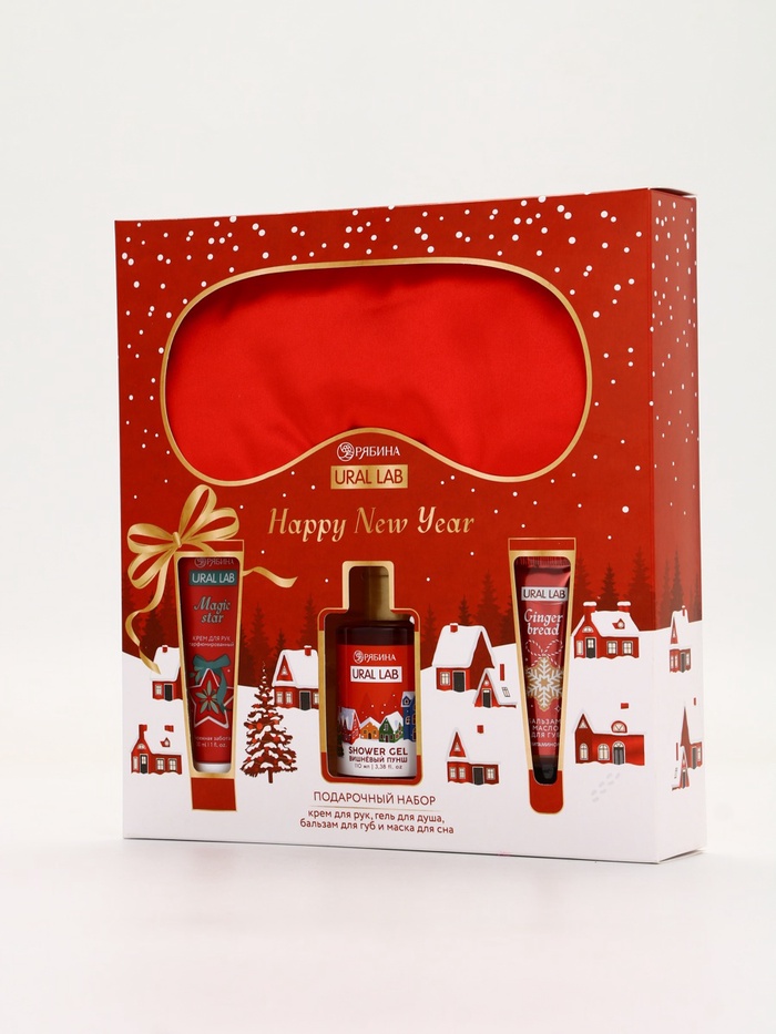 Подарочный набор новогодний: гель для душа, крем для рук, бальзам для губ, маска для сна, URAL LAB — Характеристики