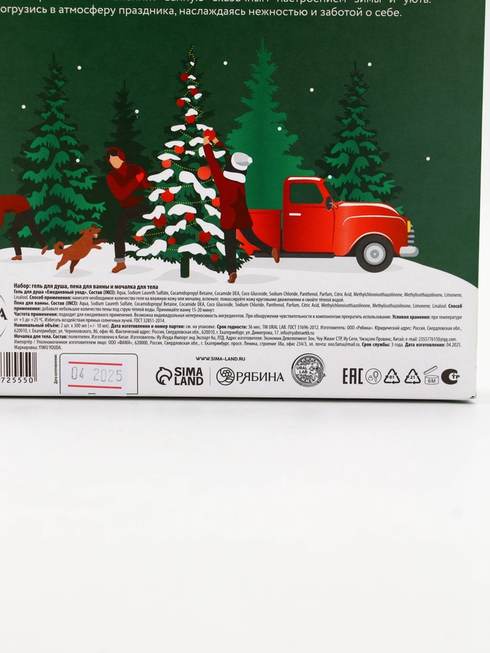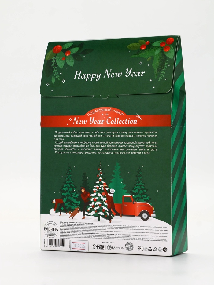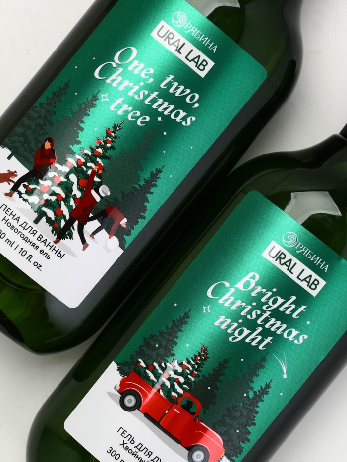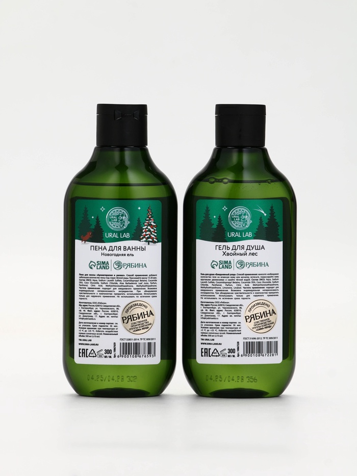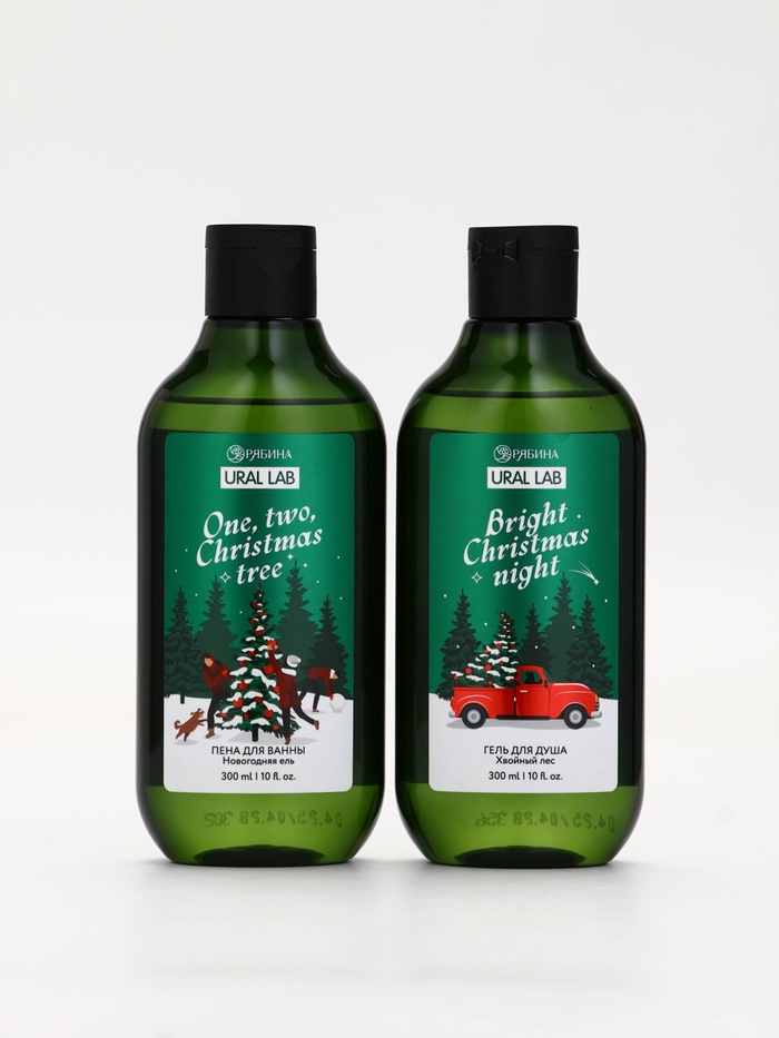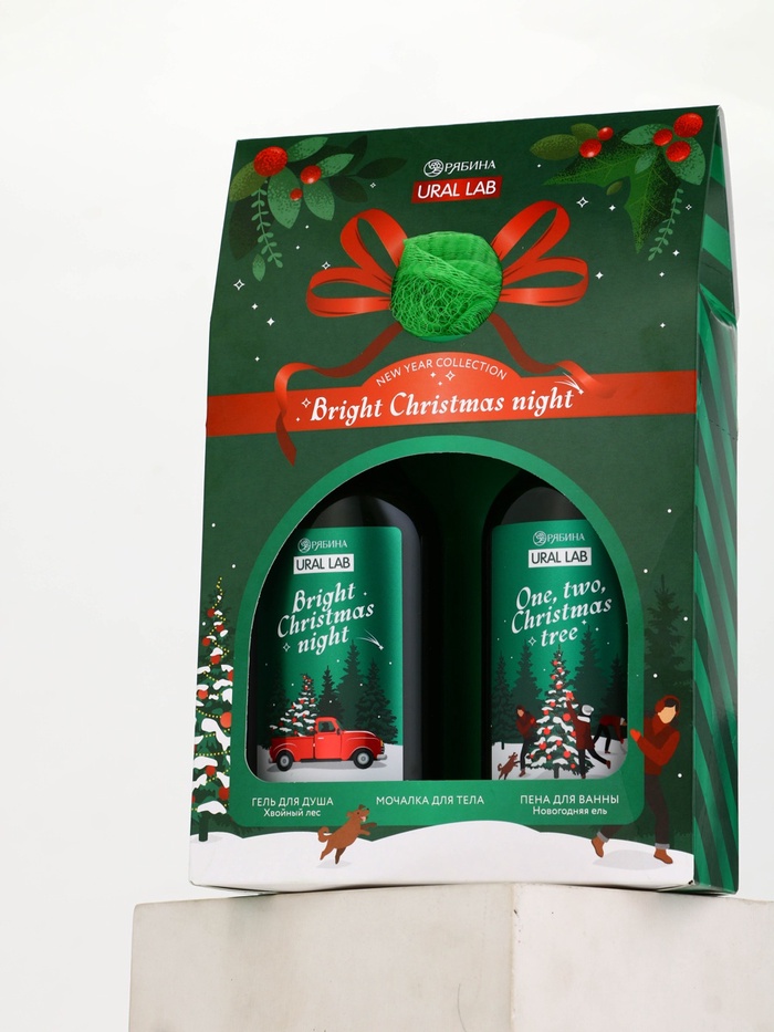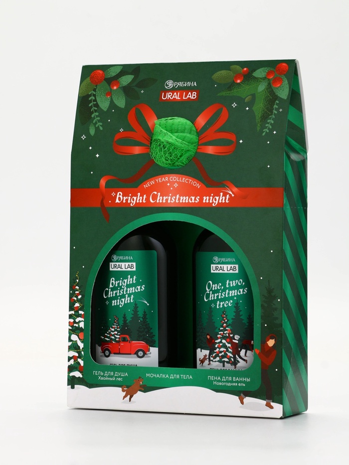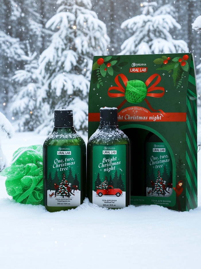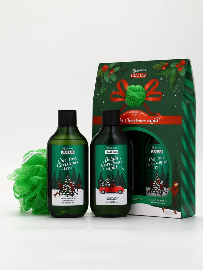Подарочный набор новогодний: гель для душа, пена для ванны и мочалка, URAL LAB — Характеристики