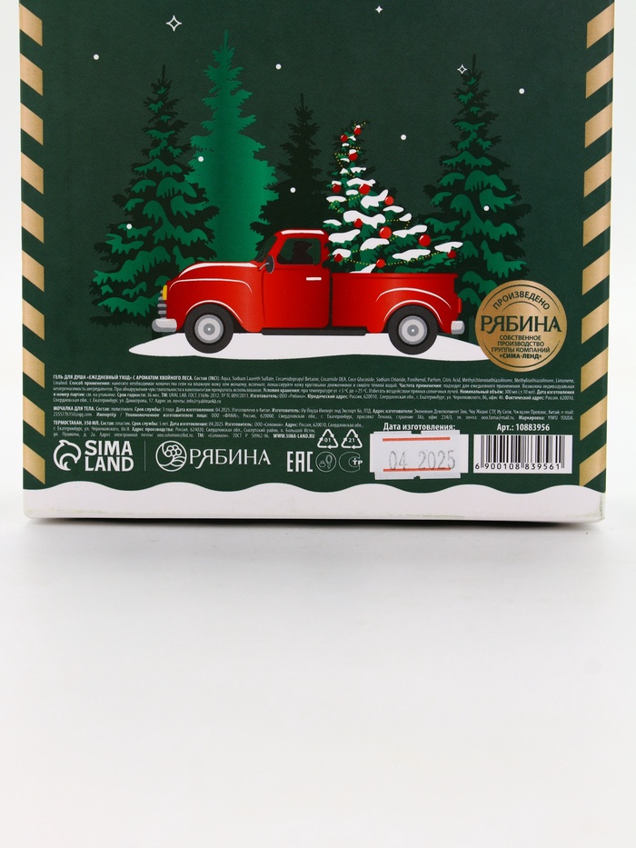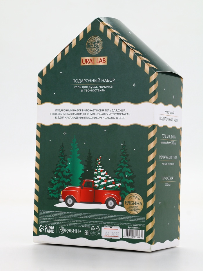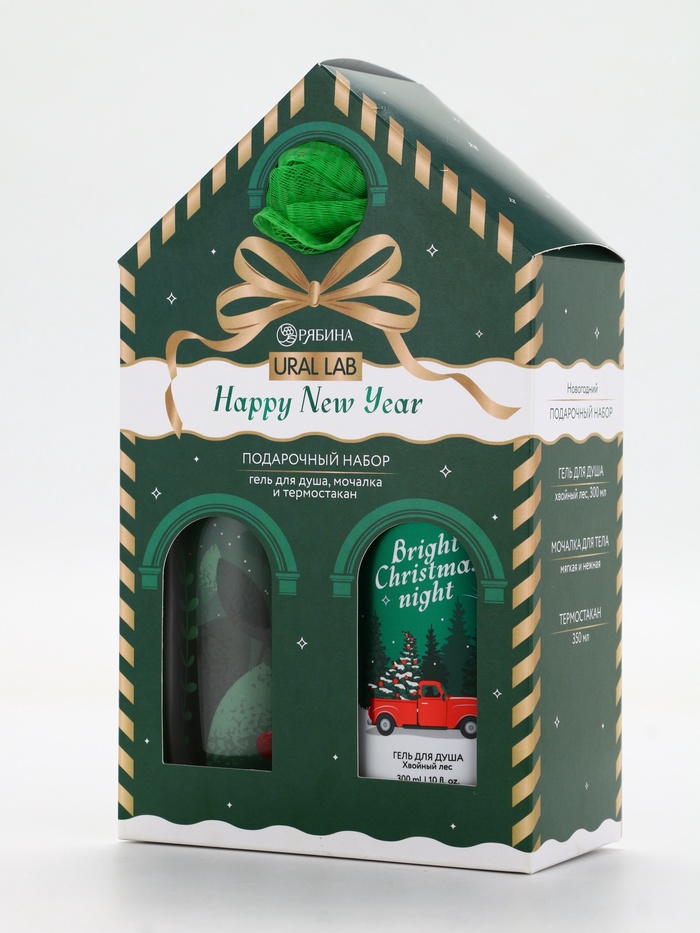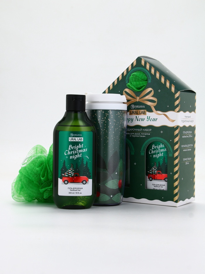 Подарочный набор новогодний Happy New Year: гель для душа, мочалка и термостакан, аромат хвойный лес, URAL LAB — Характеристики