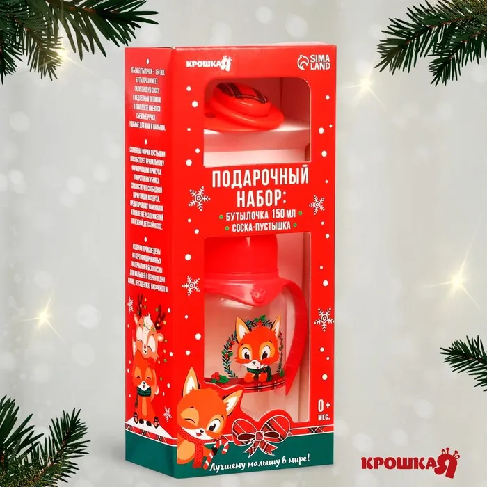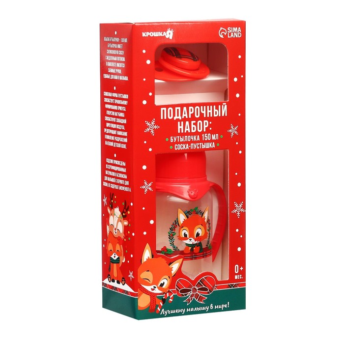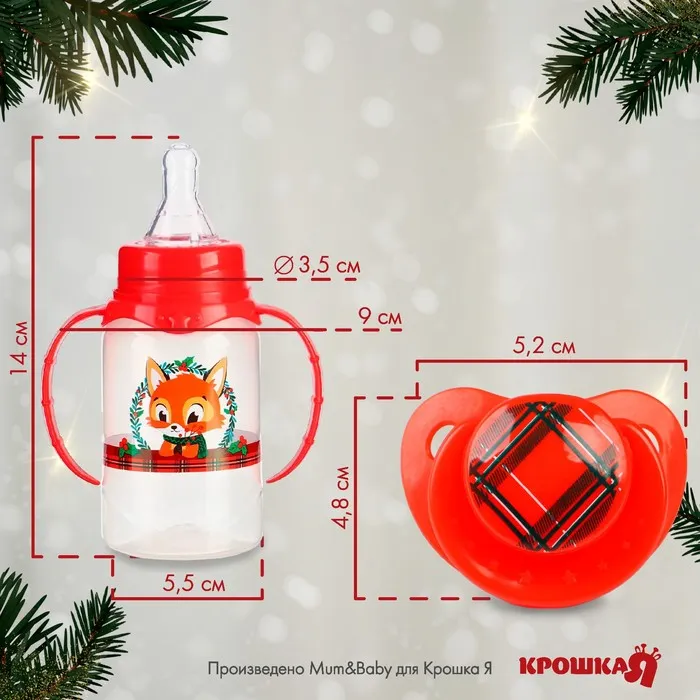 Подарочный набор новогодний Крошка Я «Наше счастье, красная клетка»: бутылочка для кормления 150 мл., пустышка силикон ортодонтическая — Характеристики