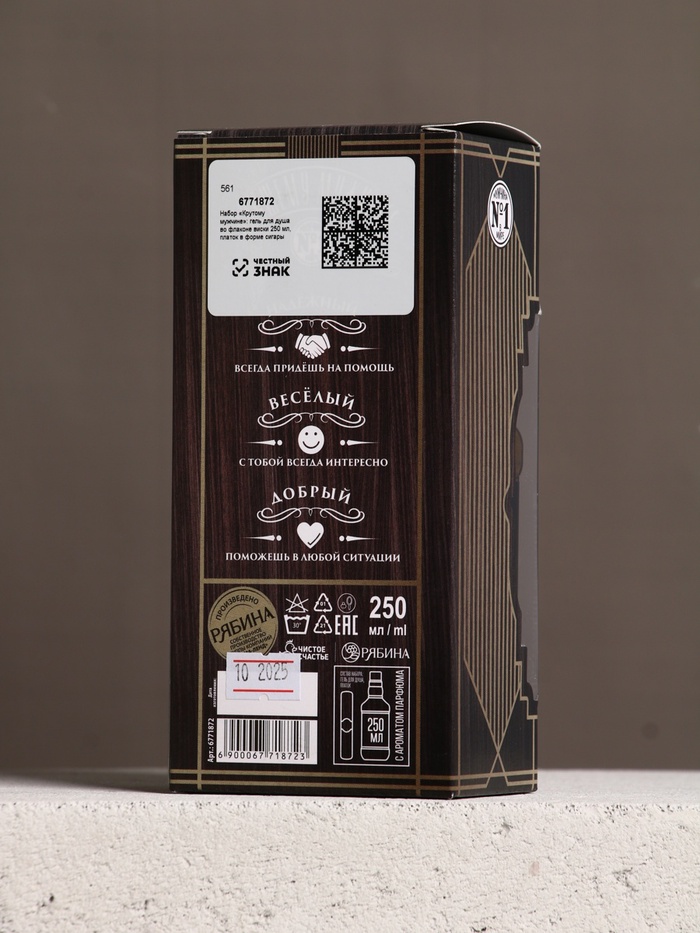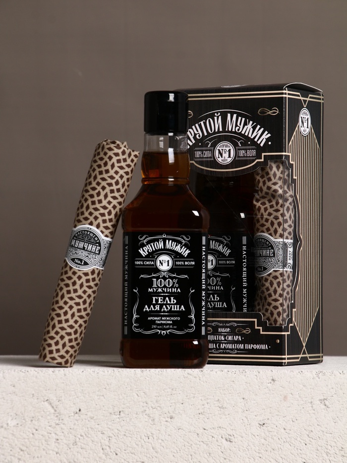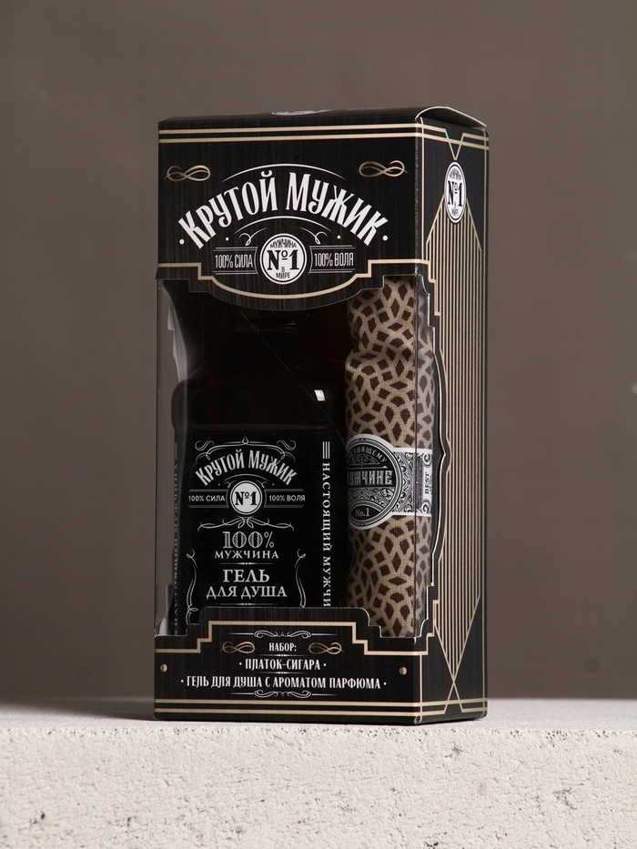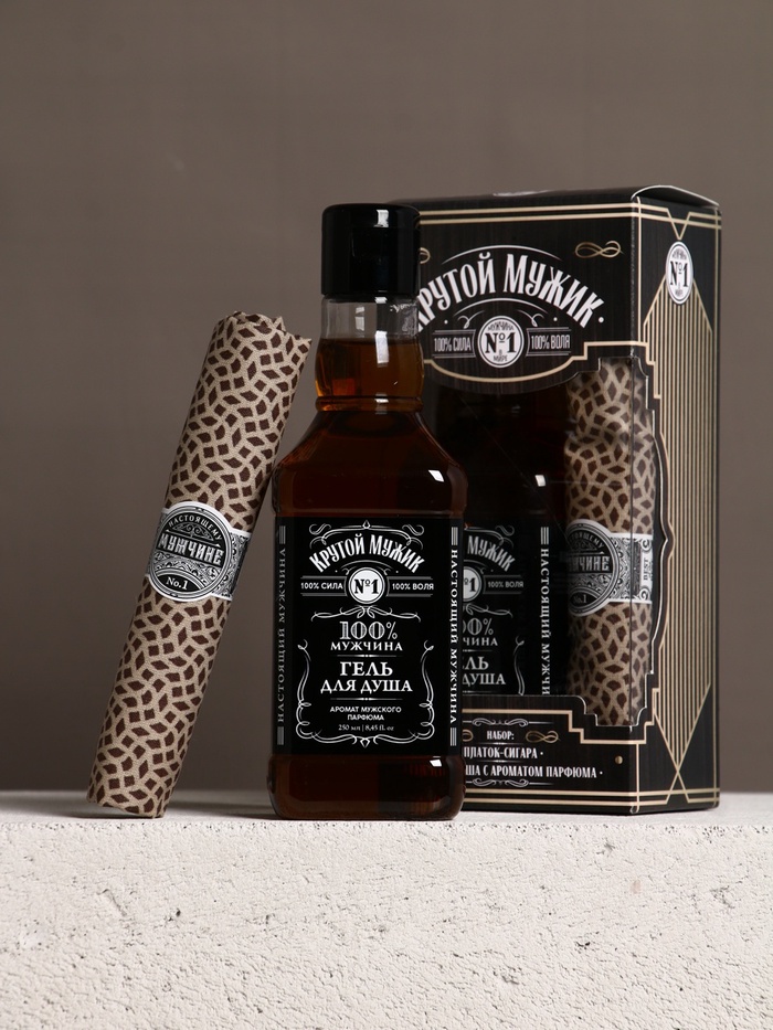 Подарочный набор новогодний «Крутому мужчине»: гель для душа во флаконе виски 250 мл, аромат мужского парфюма, платок в форме сигары — Характеристики