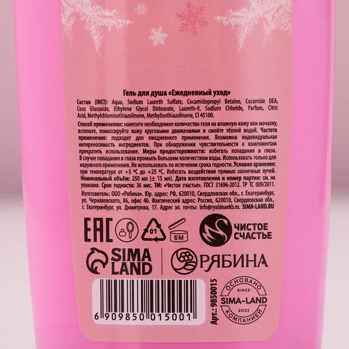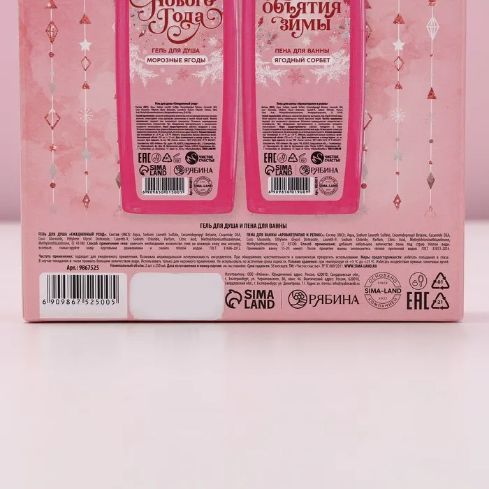 Подарочный набор новогодний «Магия праздника»: гель для душа и пена для ванны, 2×250 мл, Чистое счастье — Характеристики