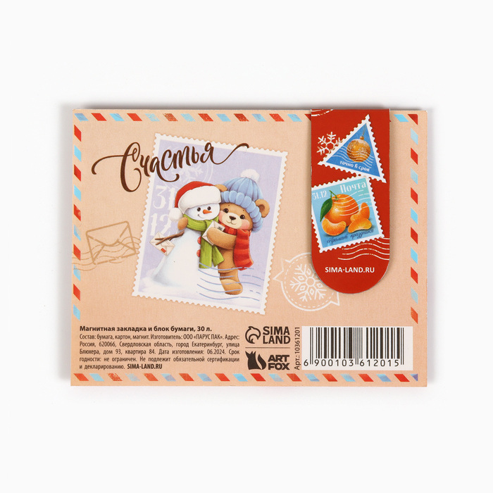 Подарочный набор новогодний, магнитная закладка и блок бумаг 30 листов «Новогодняя почта» — Характеристики