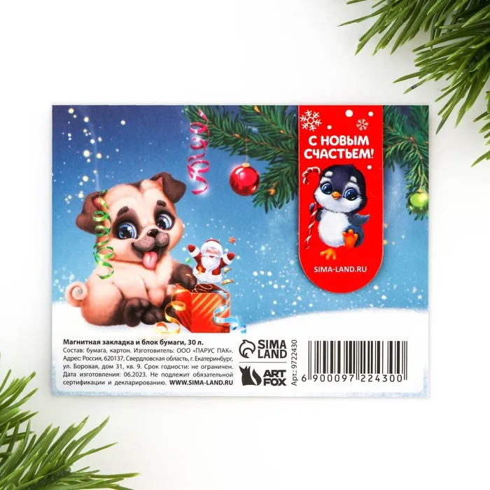 Подарочный набор новогодний, магнитная закладка и блок бумаг 30 листов «Пушистики» — Характеристики