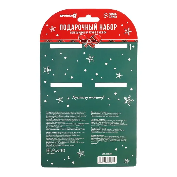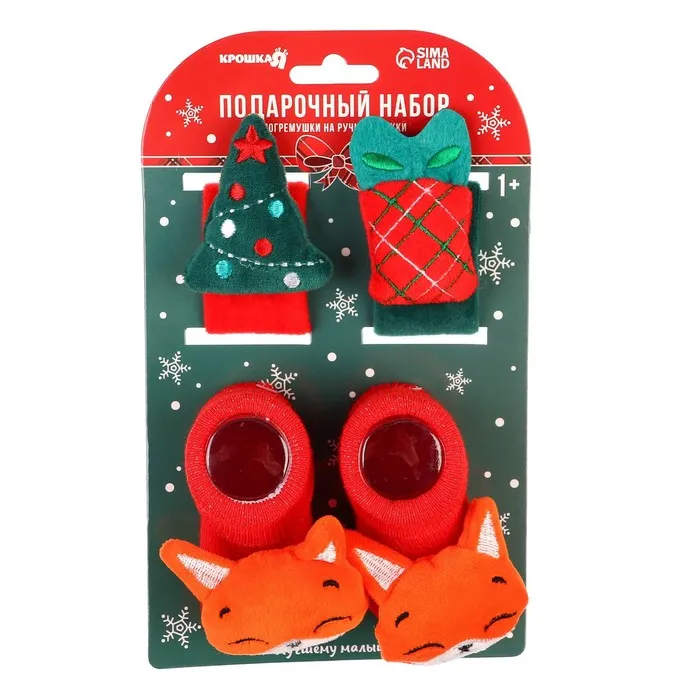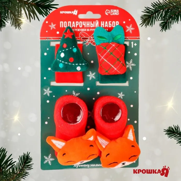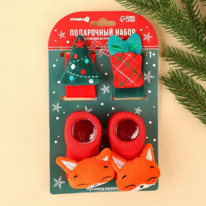 Подарочный набор новогодний «Милый подарочек, красная клетка», браслеты - погремушки, носочки - погремушки, Крошка Я — Характеристики