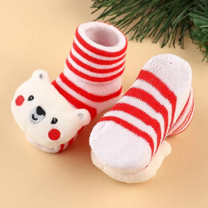 Носочки погремушки со звуковым эффектом не только согреют ножки вашего малыша, но и привлекут его внимание яркими цветами, а также звоном погремушек. Малыш сможет до них дотянуться, потрогать ручками или просто погреметь ими, подергав ножками. Малыш играет и развивает не только мышцы, но и координацию, моторику, внимание, зрение, слуховое восприятие. Милые игрушки пробуждают его стремление исследовать мир вокруг себя. Изготовлены из качественного и безопасного для здоровья детей материала, который не выцветает. Станут отличным подарком вашим близким..