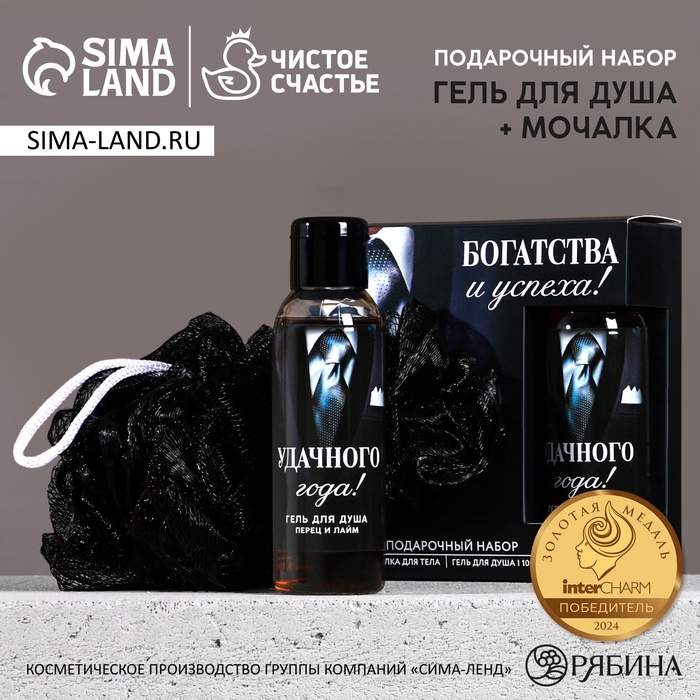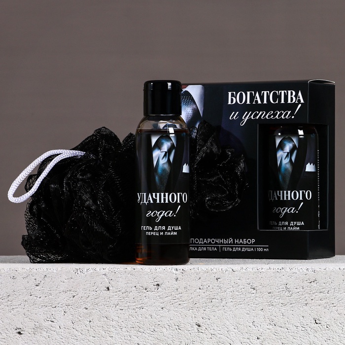 Подарочный набор новогодний мужской «Богатства и успеха», гель для душа 100 мл и мочалка для тела, Чистое счастье — Характеристики
